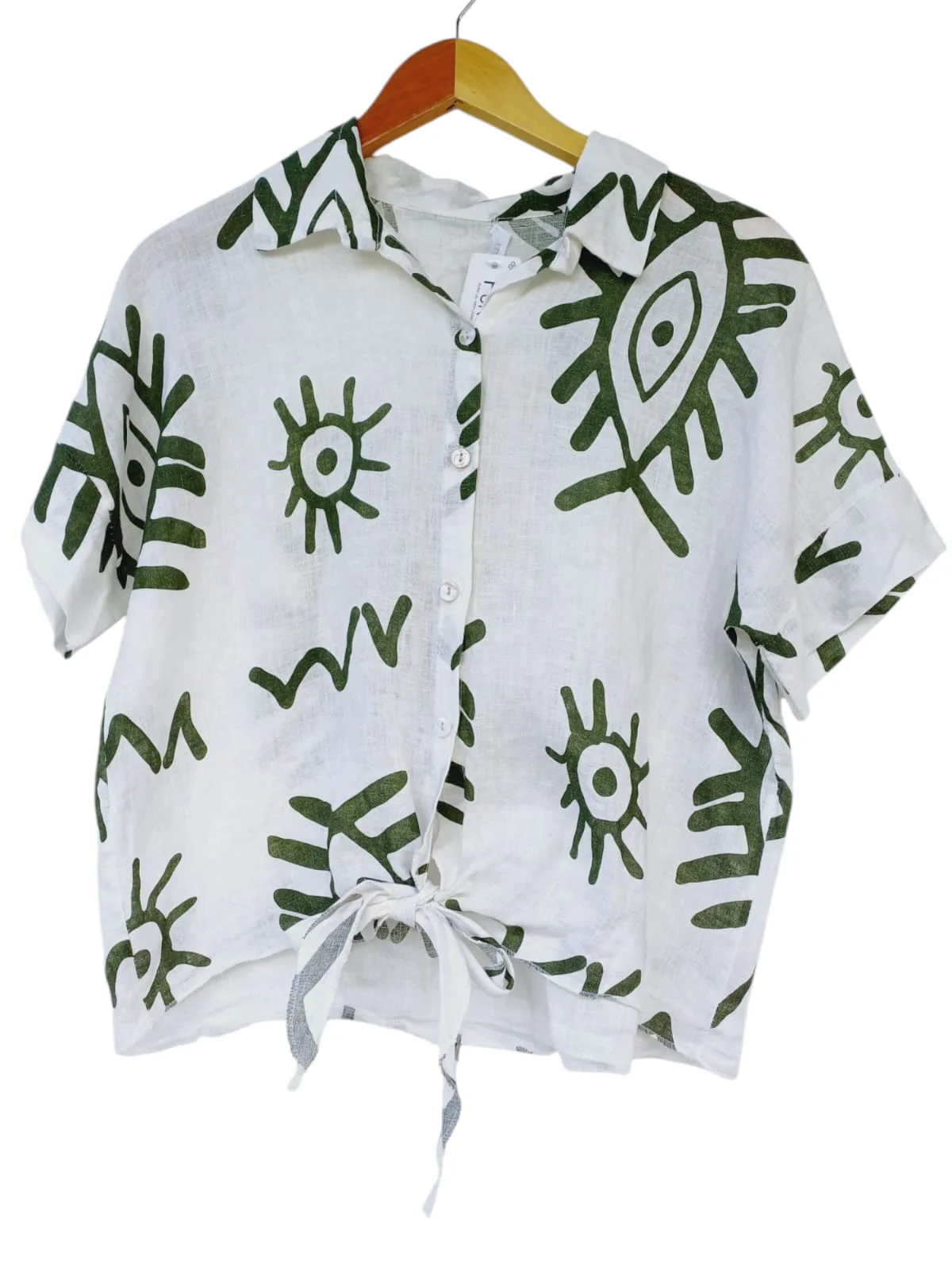 Blusa lino manga corta botones101772