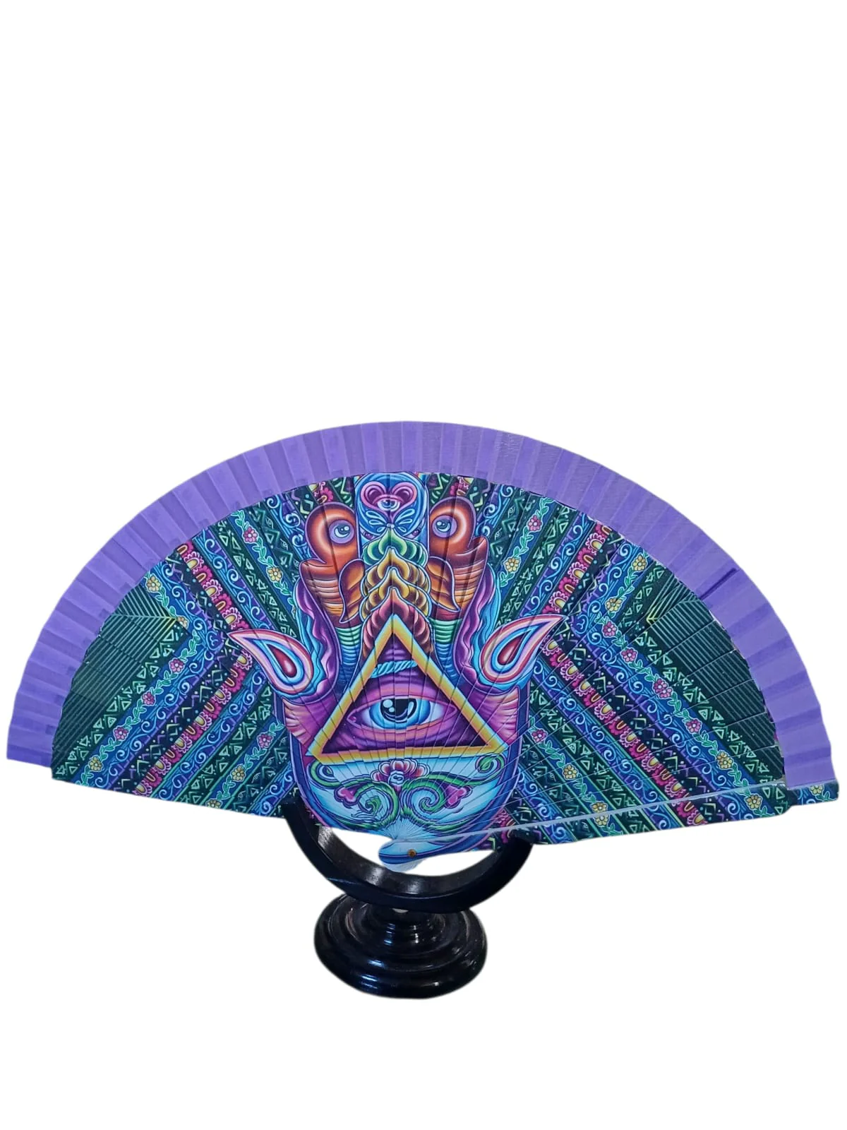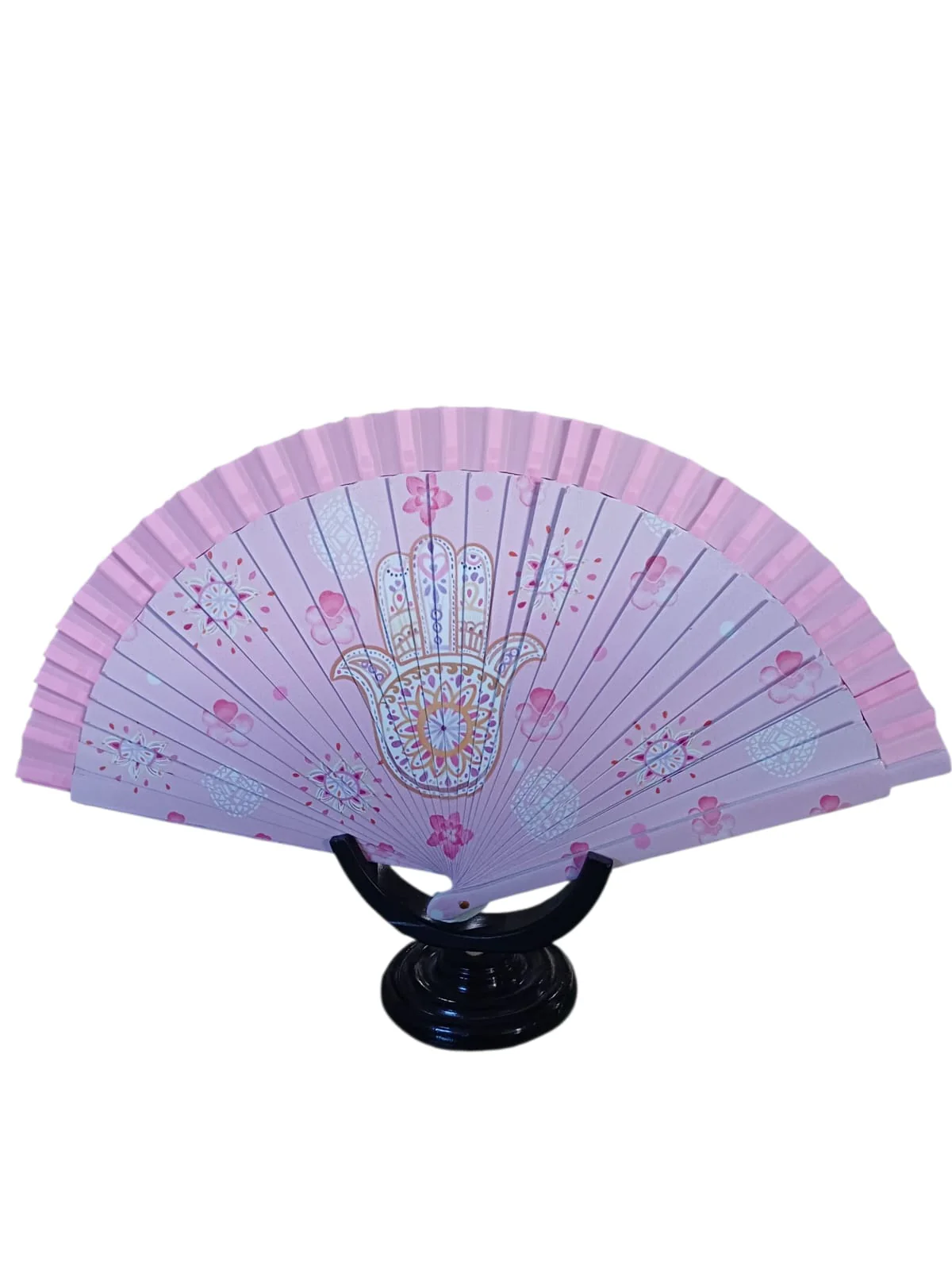 Abanico color beige estampado la mano de Fátima.