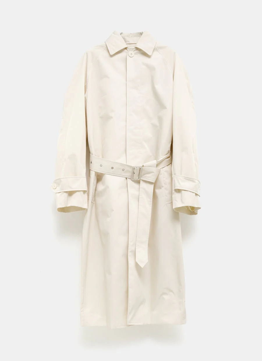 Abrigo carcoat de Phoebe Philo en sarga técnica impermeable. Con bolsillos laterales, cierre frontal con botones ocultos y cinturón. Forro de viscosa. Corte recto y relajado. Talla normal, elige tu talla habitual. Tallaje francés.