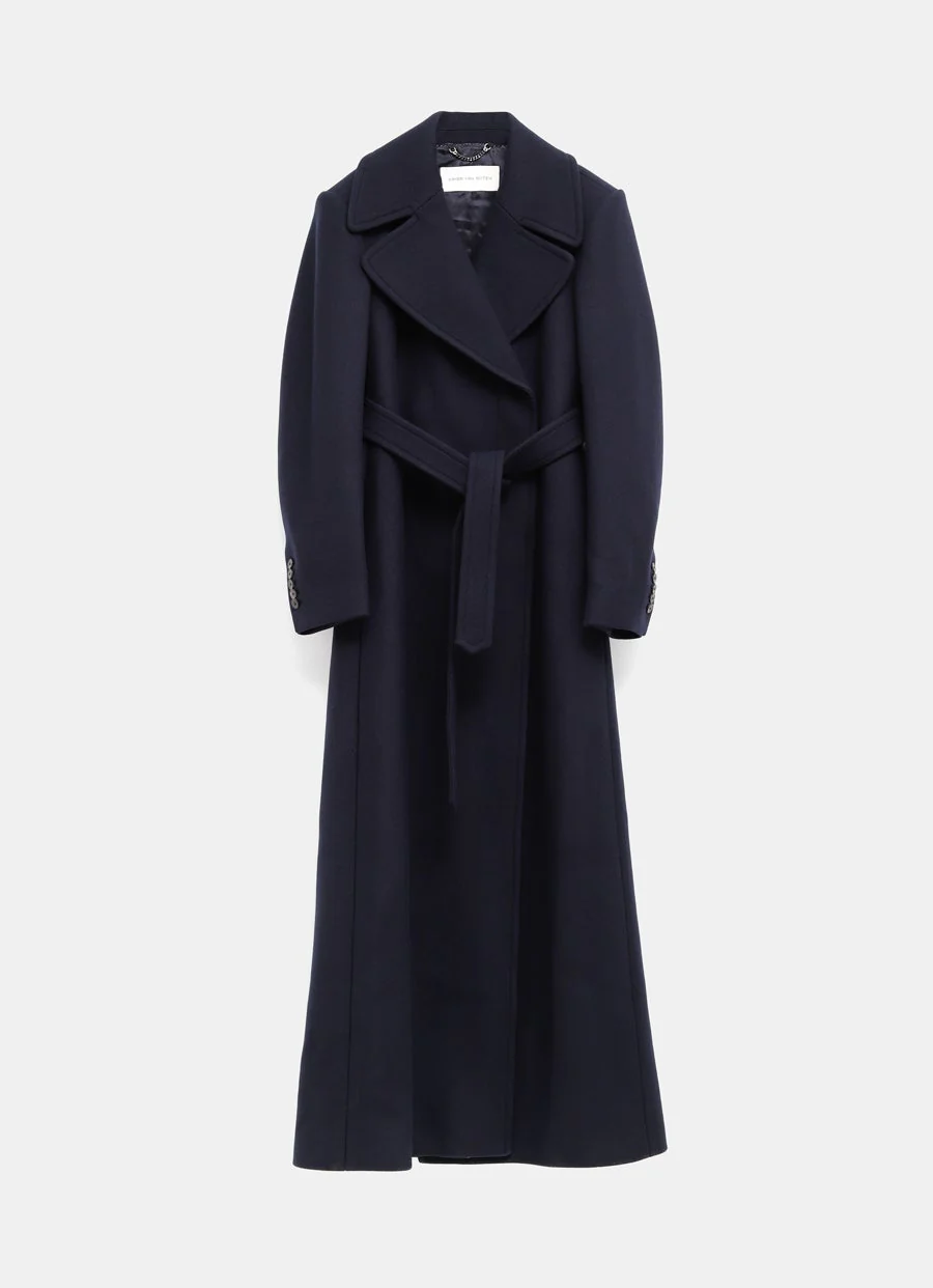 Abrigo de Dries Van Noten en mezcla de lana y poliamida. Con solapas anchas, cierre cruzado con botones ocultos, cinturón, bolsillos laterales y forro de cupro. Corte recto y largo extra. Talla normal, elige tu talla habitual. Tallaje francés para mujer.