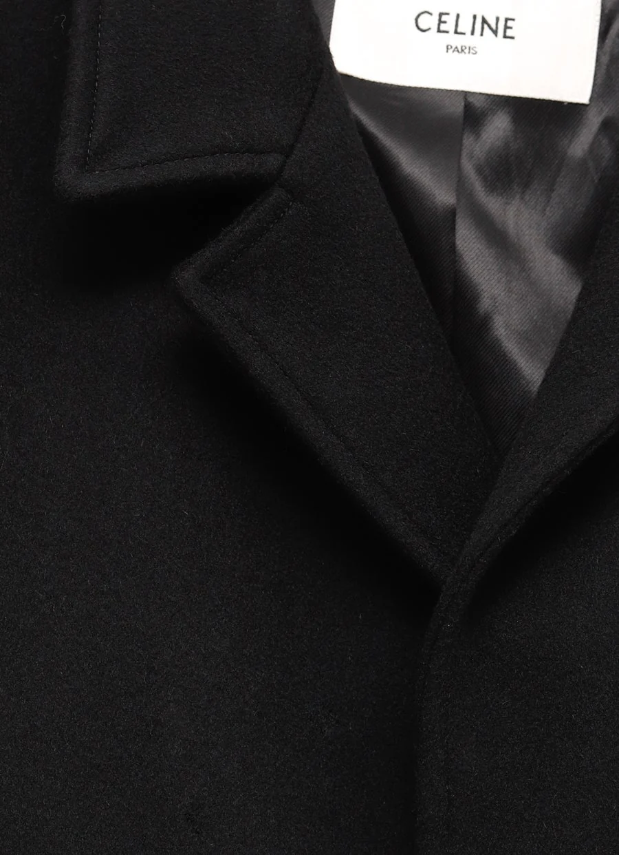 Abrigo de Celine en paño de lana con cuello de muesca, un bolsillo en el pecho y dos bolsillos de ribete diagonales delanteros. Puños con lengüeta de ajuste, abertura en la parte media de la espalda y cierre de botones delanteros. Corte holgado. Hecho en Italia. Talla normal, elige tu talla habitual. Tallaje UE para hombre.