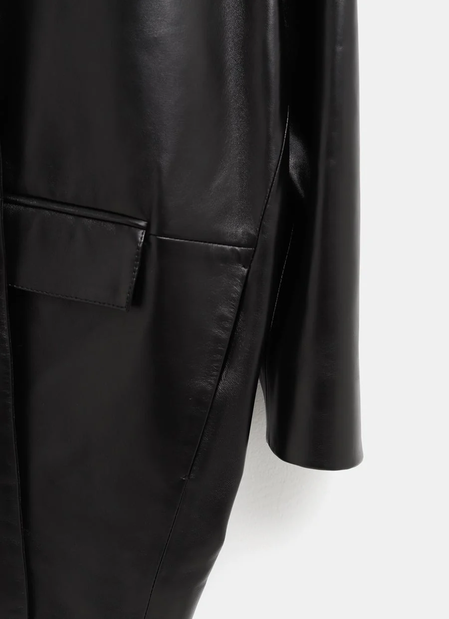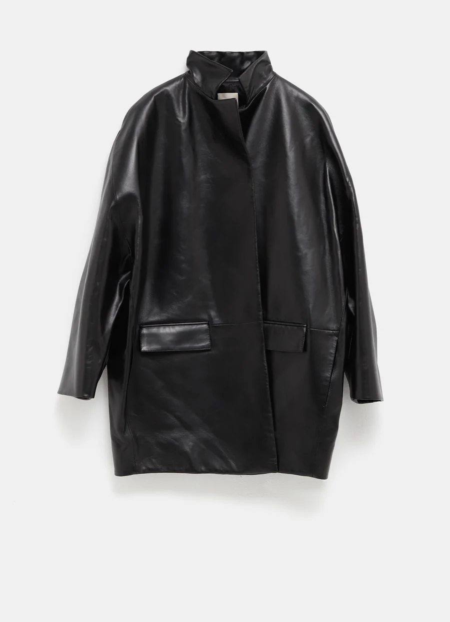 Abrigo de Khaite con silueta envolvente en piel suave y ligera de cordero. Con solapas alzadas, hombros caídos, bolsillos con solapa, cierre con botónes y forro de cupro. Hecho en USA. Talla normal, elige tu talla habitual. Tallaje estándar para mujer.