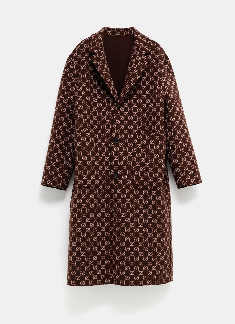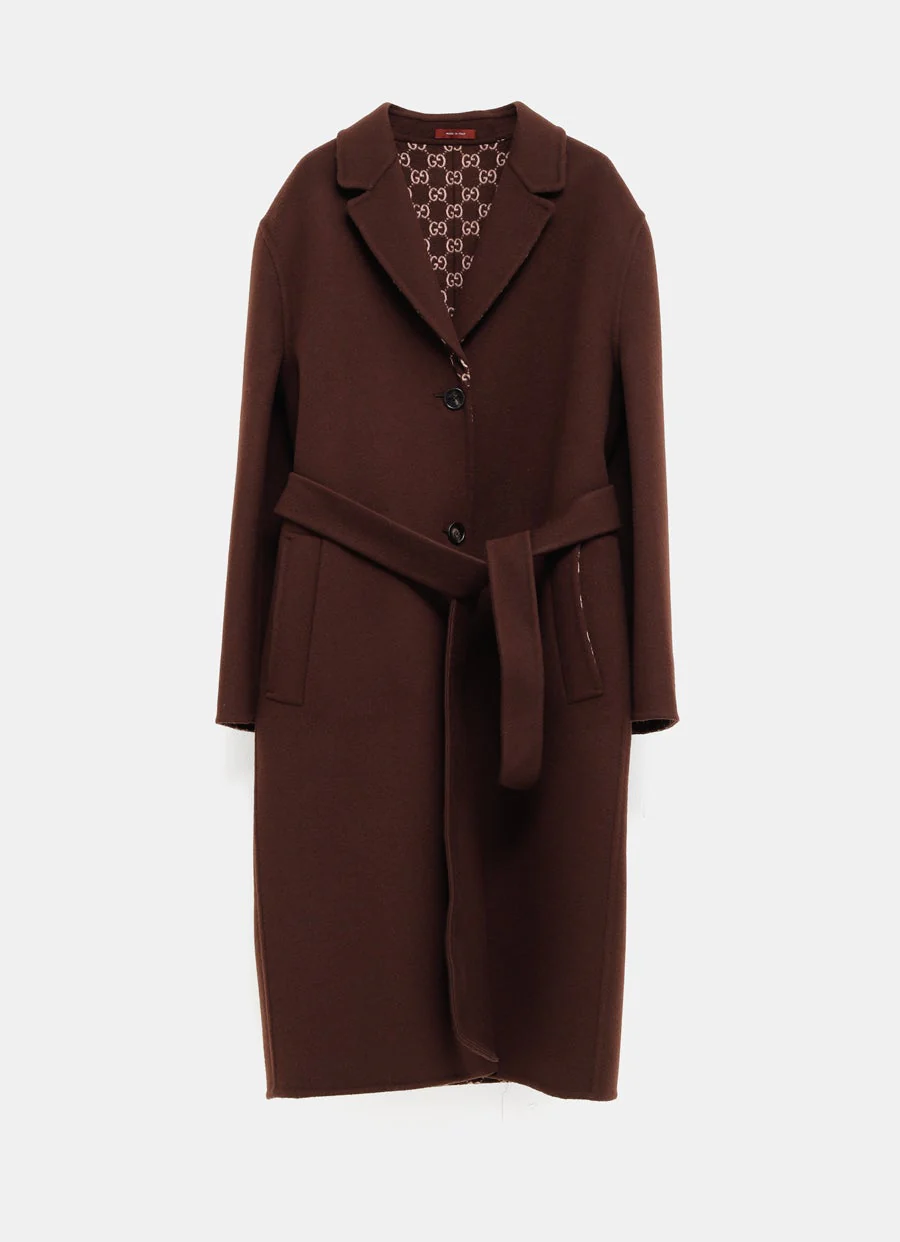 Abrigo de Gucci en mezcla de lana y seda, liso por una cara y con motivo GG en la otra. Con solapas de pico, hombros ca铆dos, bolsillos delanteros y cierre de botones. Incluye cintur贸n. Dise帽o reversible. Hecho en Italia. Talla normal, elige tu talla habitual. Tallaje italiano para mujer.