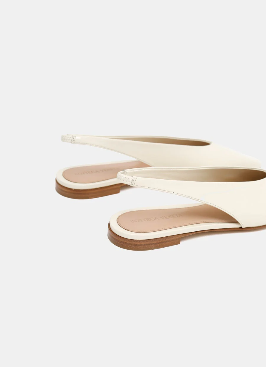 Bailarina destalonada de punta de Bottega Veneta de piel de becerro brillante con estructura flexible. Tobillo elástico, suela de piel con inyección de goma, y forro de piel de cordero. Hecha en Italia. Talla normal, elige tu talla habitual. Tallaje francés para mujer.