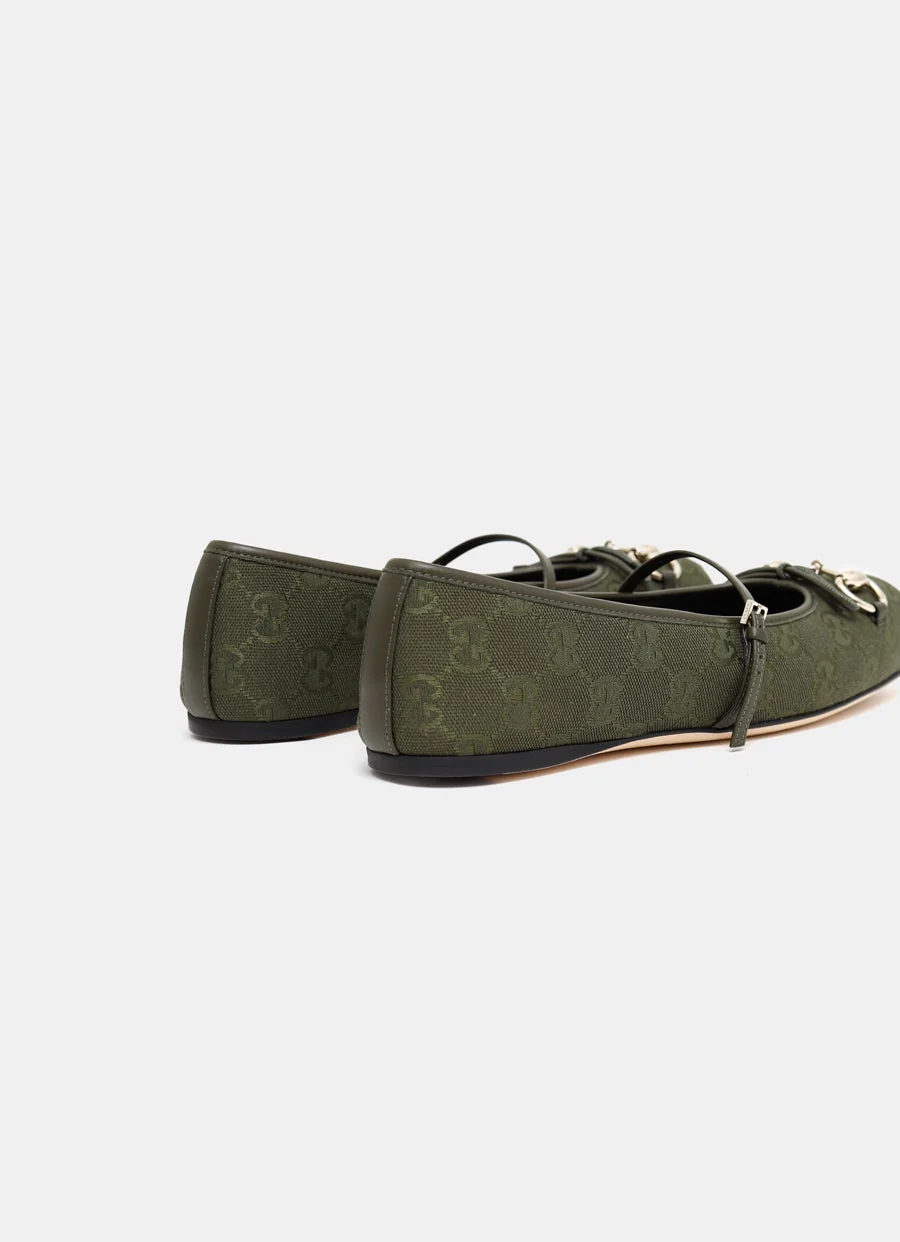 Bailarina de Gucci en lona GG con detalle de lazo y horsebit. Forro de piel, plantilla acolchada suave y cierre de tira ajustable de piel con hebilla. Hecho en Italia. Talla normal, elige tu talla habitual. Tallaje italiano para mujer.