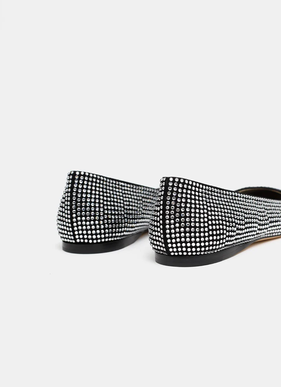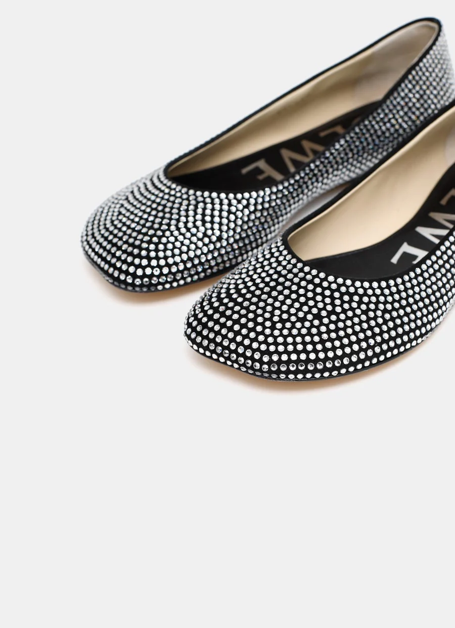 Bailarina plana de Loewe en ante de cordero decorada con pedrería. Tacón de 1 cm de altura. Hecha en Italia. Talla normal, elige tu talla habitual. Tallaje francés.