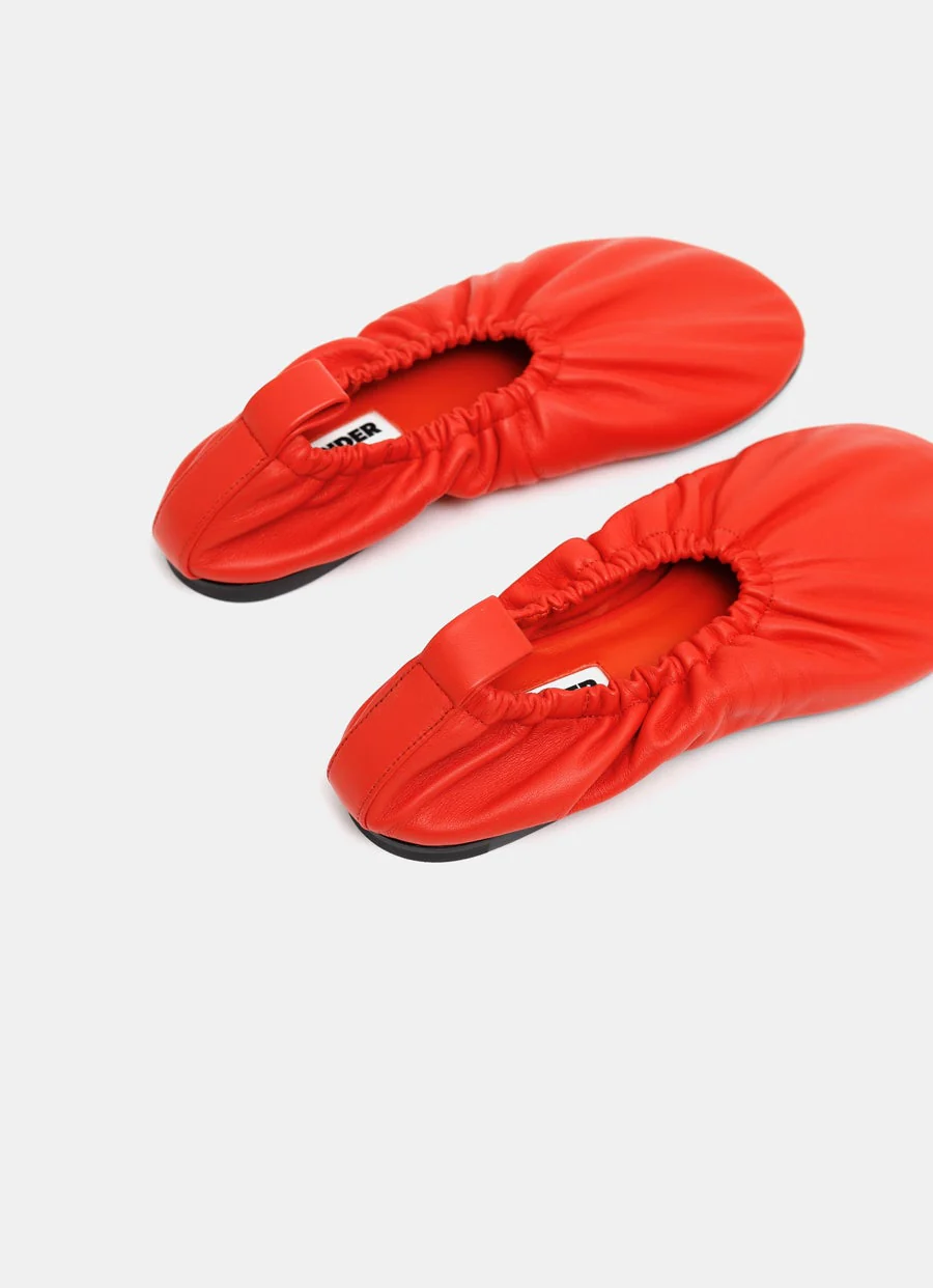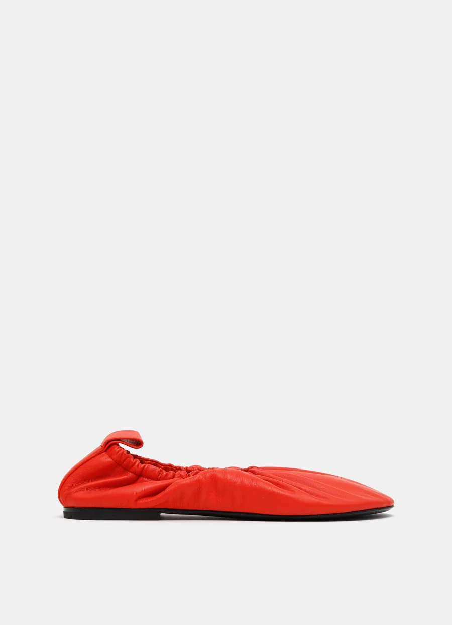 Bailarinas de Jil Sander de piel napa con punta redonda exagerada y diseño fruncido. Tiradores traseros, plantilla y forro napa, suela de piel de becerro, y logotipo de la marca en la plantilla. Hechas en Italia. Tallan normal, escoge tu talla habitual. Tallaje UE para mujer.