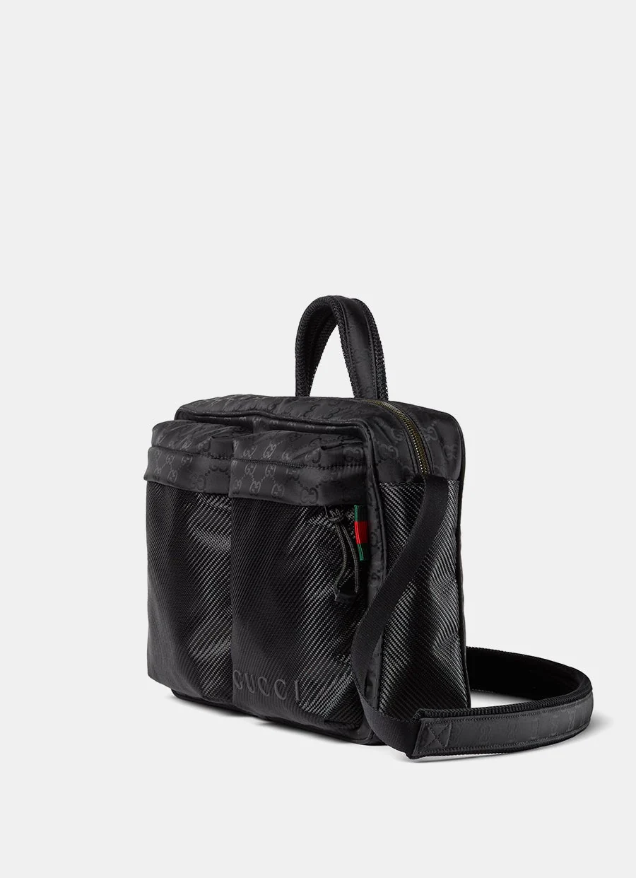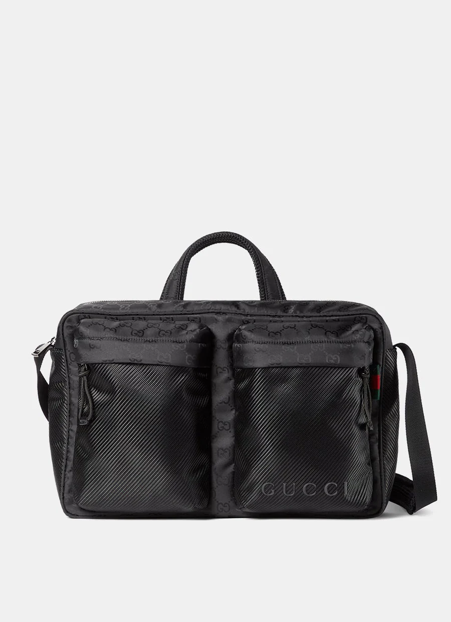 Bolso bandolera de Gucci en nylon GG con detalle de tribanda Web, logo en relieve y forro de nylon. Compartimento principal con cierre de cremallera, espacio para un portátil de 33 cm, un iPad, una libreta A4, un iPhone Plus y otros objetos pequeños. Dos bolsillos con cremallera exterior. Correa ajustable con 42 cm de caída y asa de 8 cm. Tamaño: 37 x 23 x 10 cm aprox. Hecho en Italia.