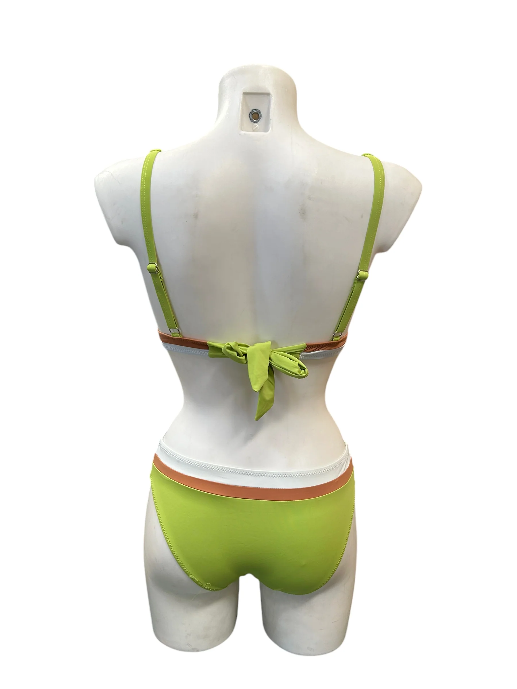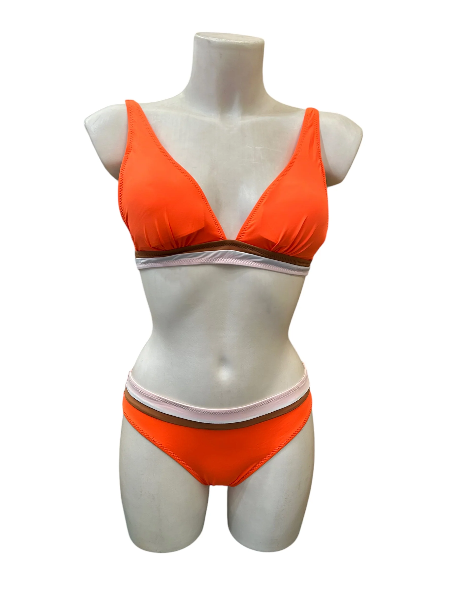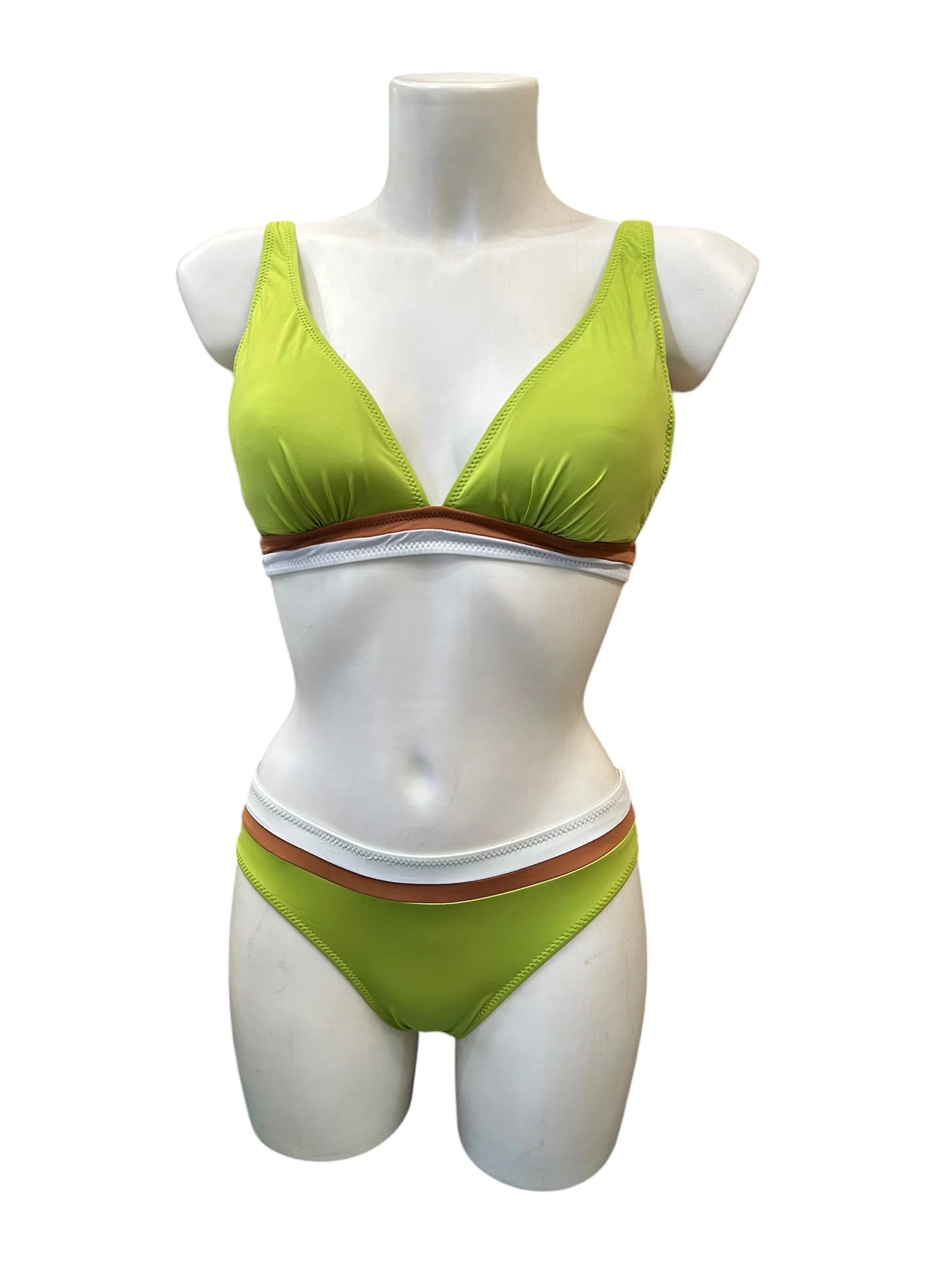 TRAJE DE BA脩O DE DOS PIEZAS, CALZON DE CINTURA ALTA, BRASIER CON PLISADO