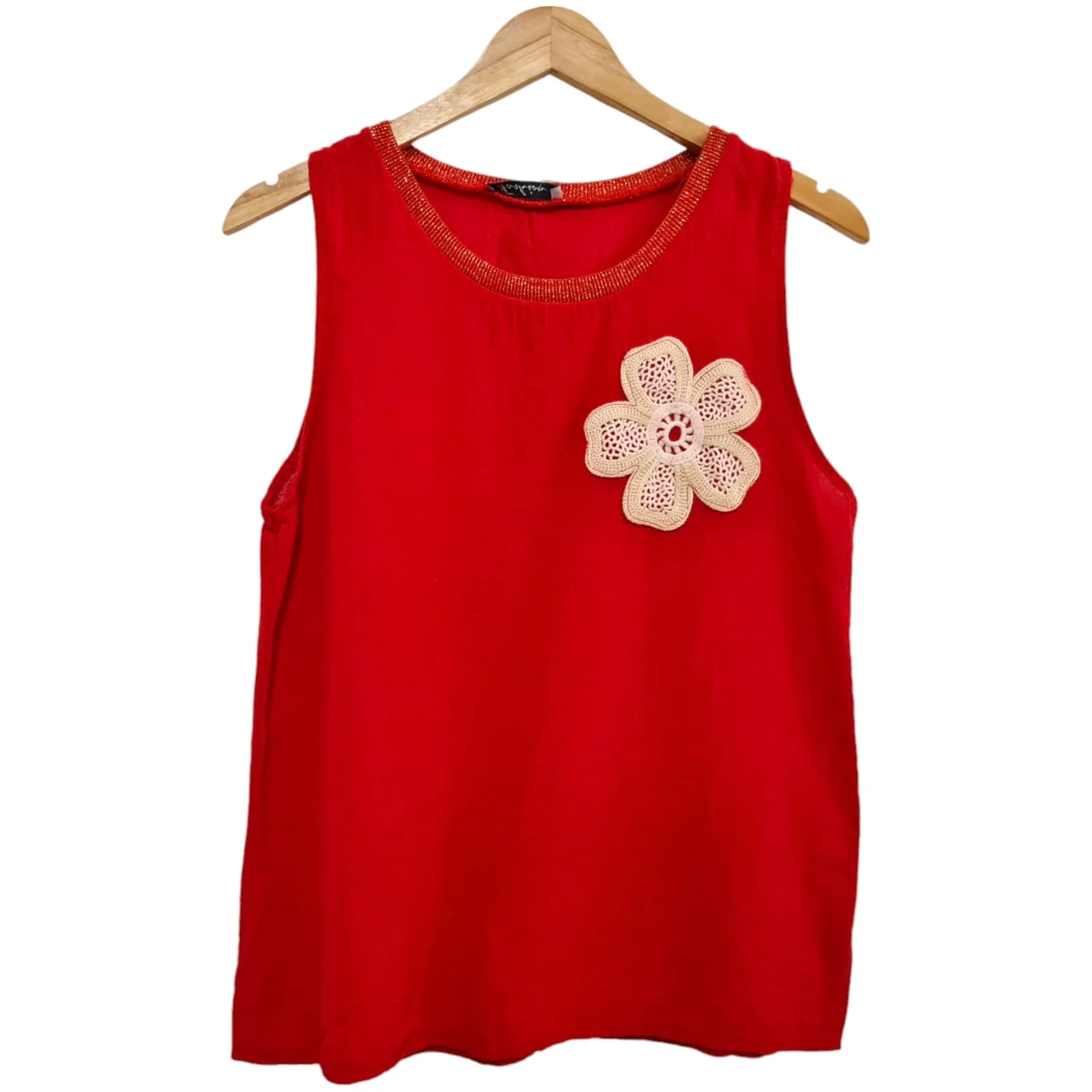 Blusa ligera 45% viscosa, 55% lino, color verde botones y bolsillo en pecho.