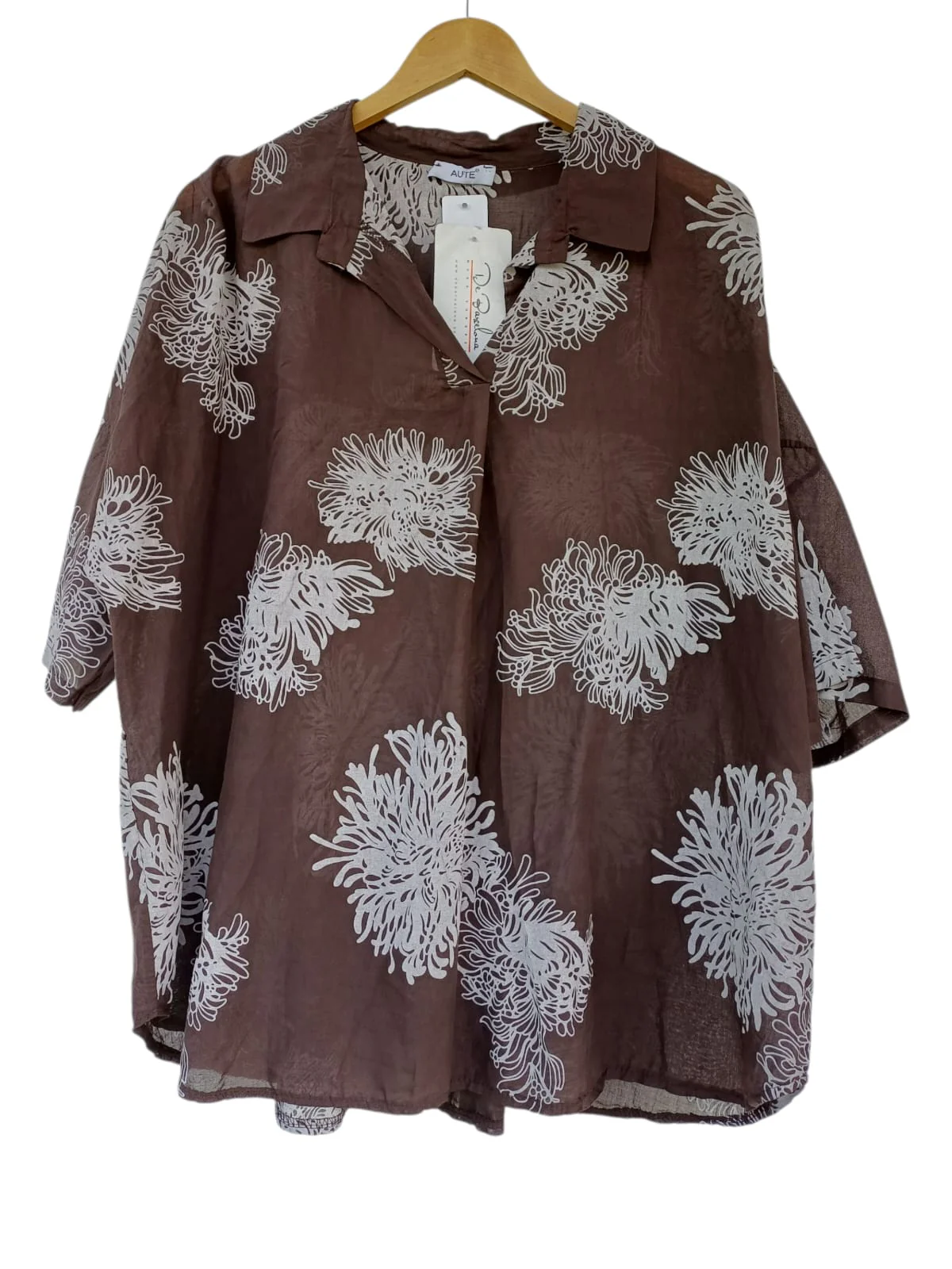 100% ALGODÓN. BLUSA MANGA CORTA BOTONES ESTAMPADO FLORES.