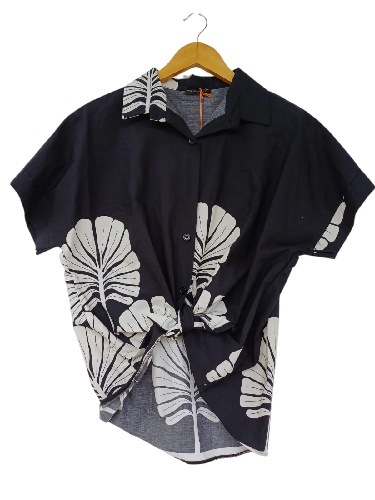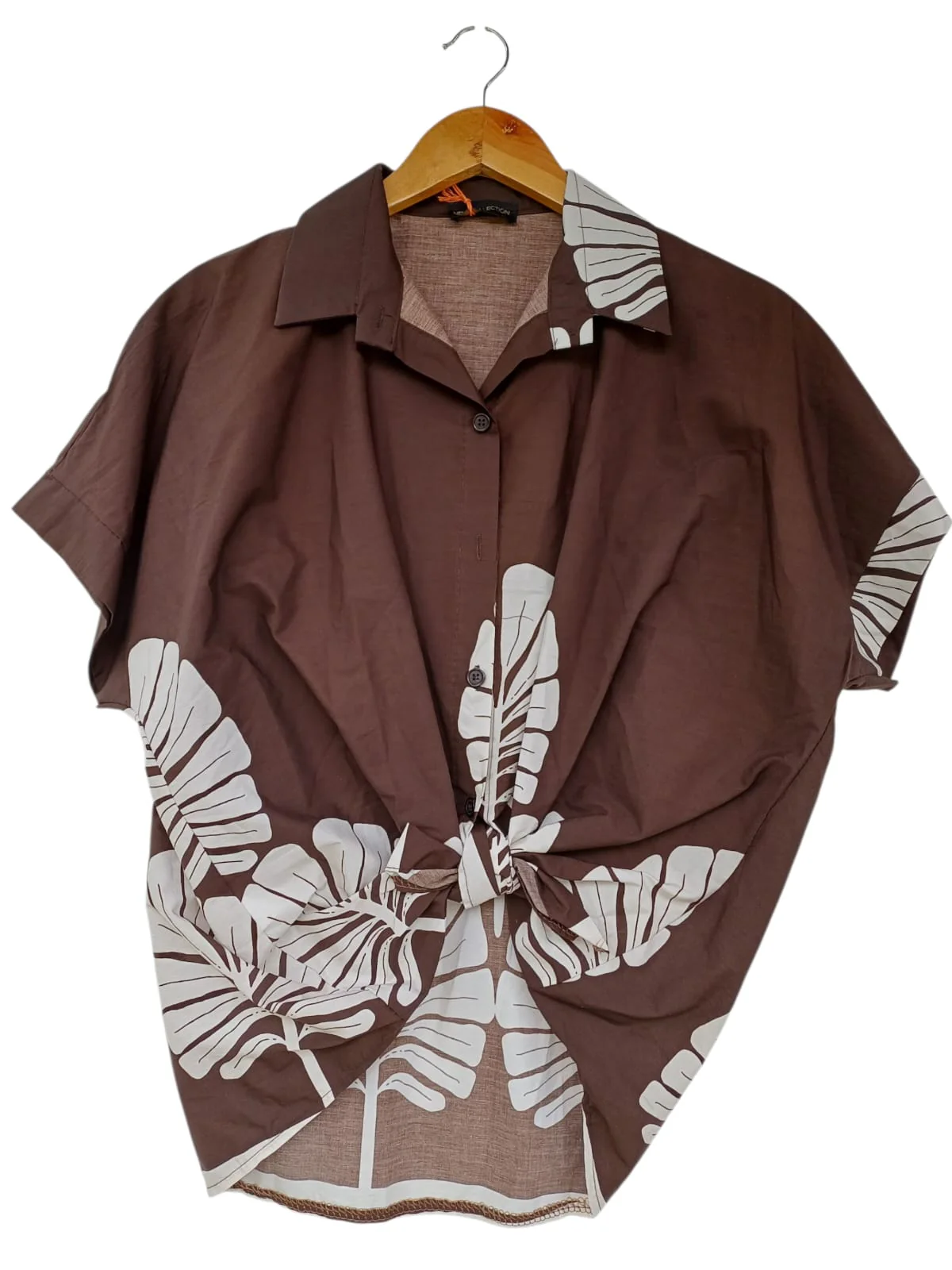 100% ALGODON. BLUSA MANGA CORTA ESTAMPADA HOJAS.