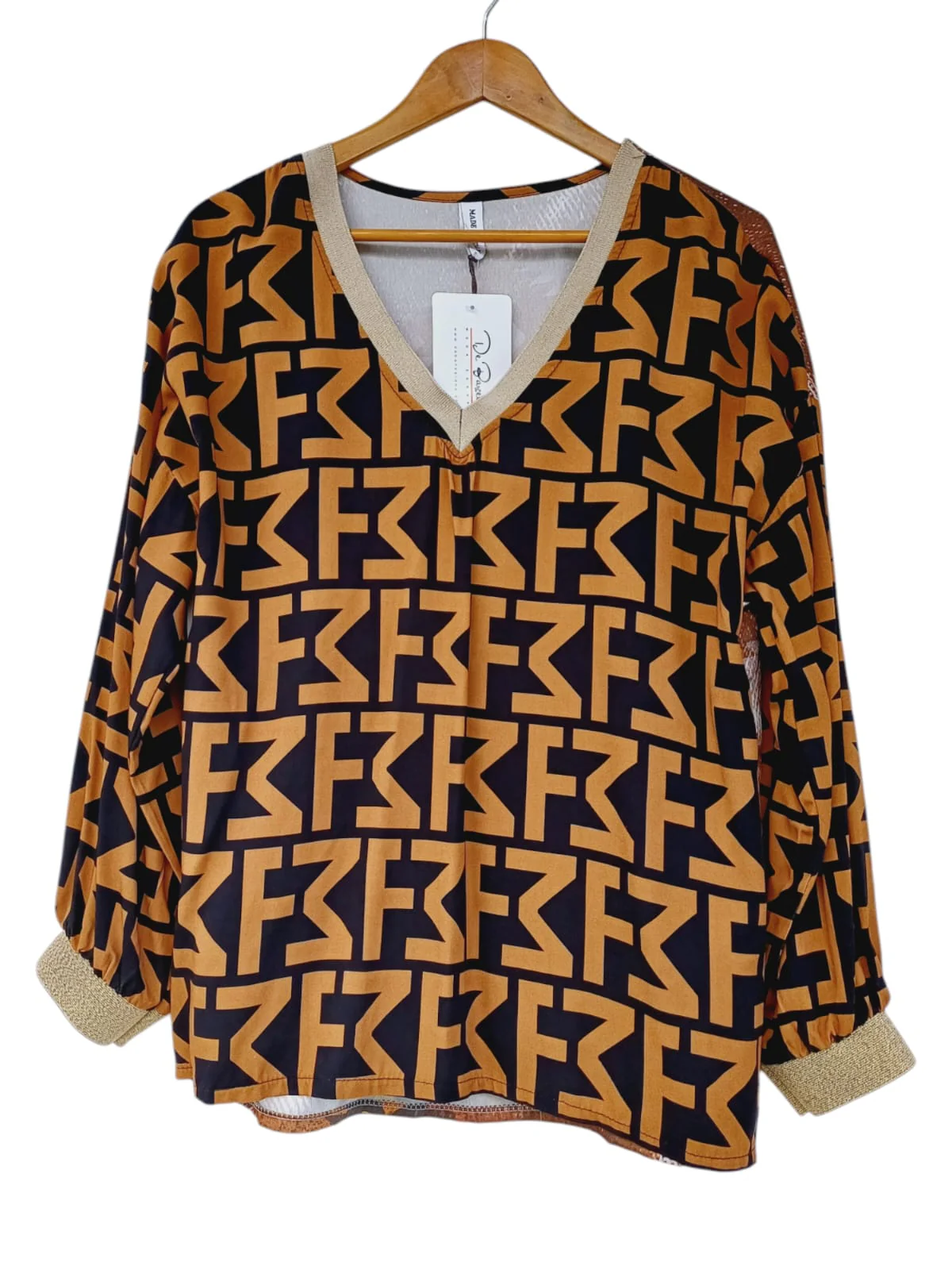 Blusa ligera 100% algodón, color camel estampada calavera de toro corona de plumas y flores del suroeste en la espalda , manga larga.