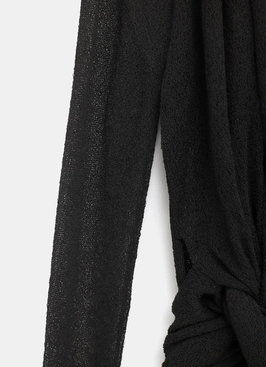 Body semitransparente de Ferragamo con manga larga, cuello alto y tira drapeada que se puede llevar enrollada en el cuerpo. Cierre de cremallera invisible y botones de presión. Corte ajustado. Hecho en Italia. Talla normal, elige tu talla habitual. Tamaño estándar.