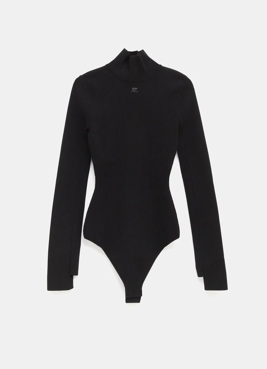 Body de Courrèges en tejido elástico de canalé con cuello alto, braguita con cierre de botones automáticos y corte ajustado. Talla normal, elige tu talla habitual. Tallaje francés para mujer.