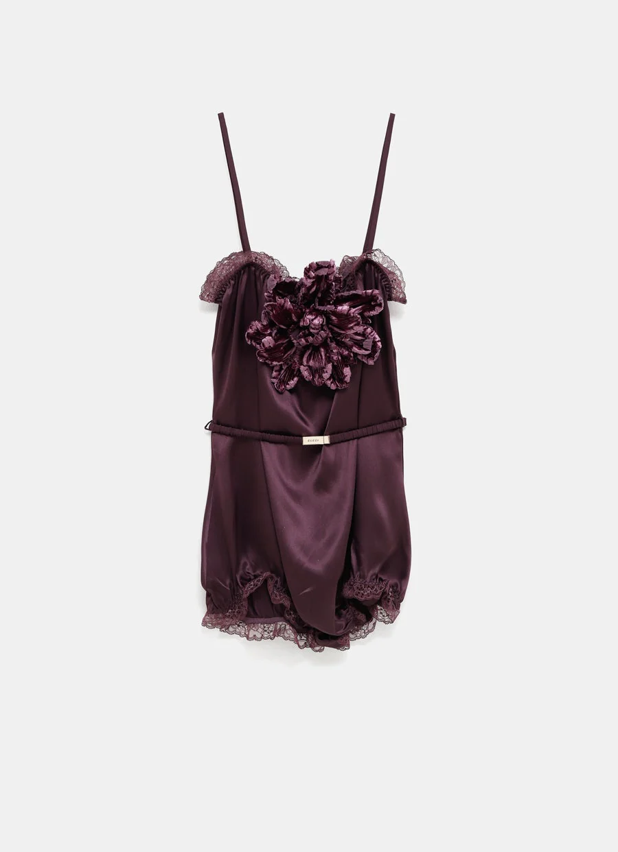Body de Gucci en satén con remates de encaje. Con tirantes finos, cinturón elástico, fruncido y removible, hebilla de metal y broche de flor removible. Hecha en Italia. Talla normal, elige tu talla habitual. Tallaje estándar para mujer.