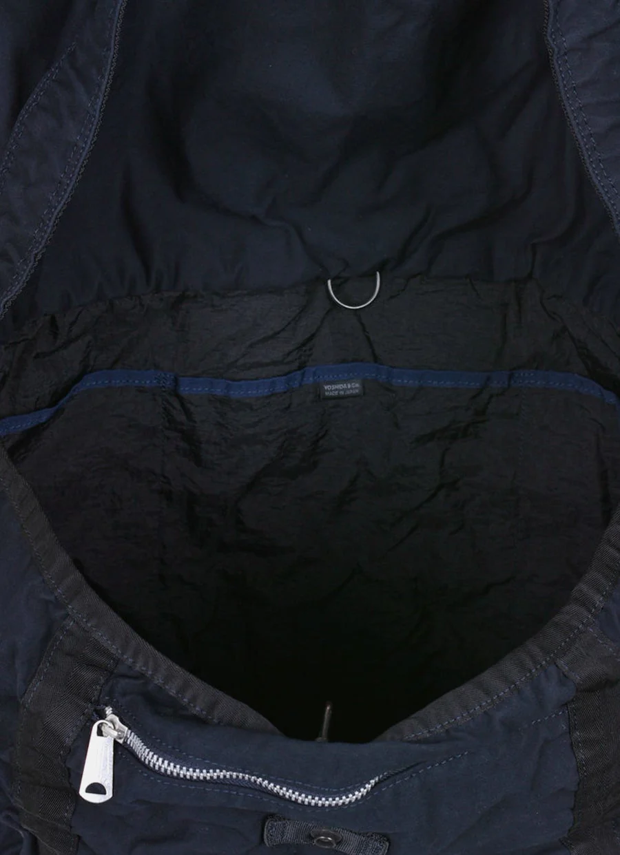 Bolso bandolera de lona de Porter-Yoshida & Co., parte de la serie Porter Crag. Se puede llevar en la mano, al hombro o cruzado. Cierre de solapa superior con cierre de botones a presión, cierre superior en el interior con mosquetón, dos bolsillos traseros, asa superior, múltiples bolsillos interiores, correa ajustable, y costuras reforzadas. La textura y el color del artículo puede variar ligeramente debido al proceso de teñido y secado. Hecho en Japón. Medidas: 45 x 40 x 14 cm.