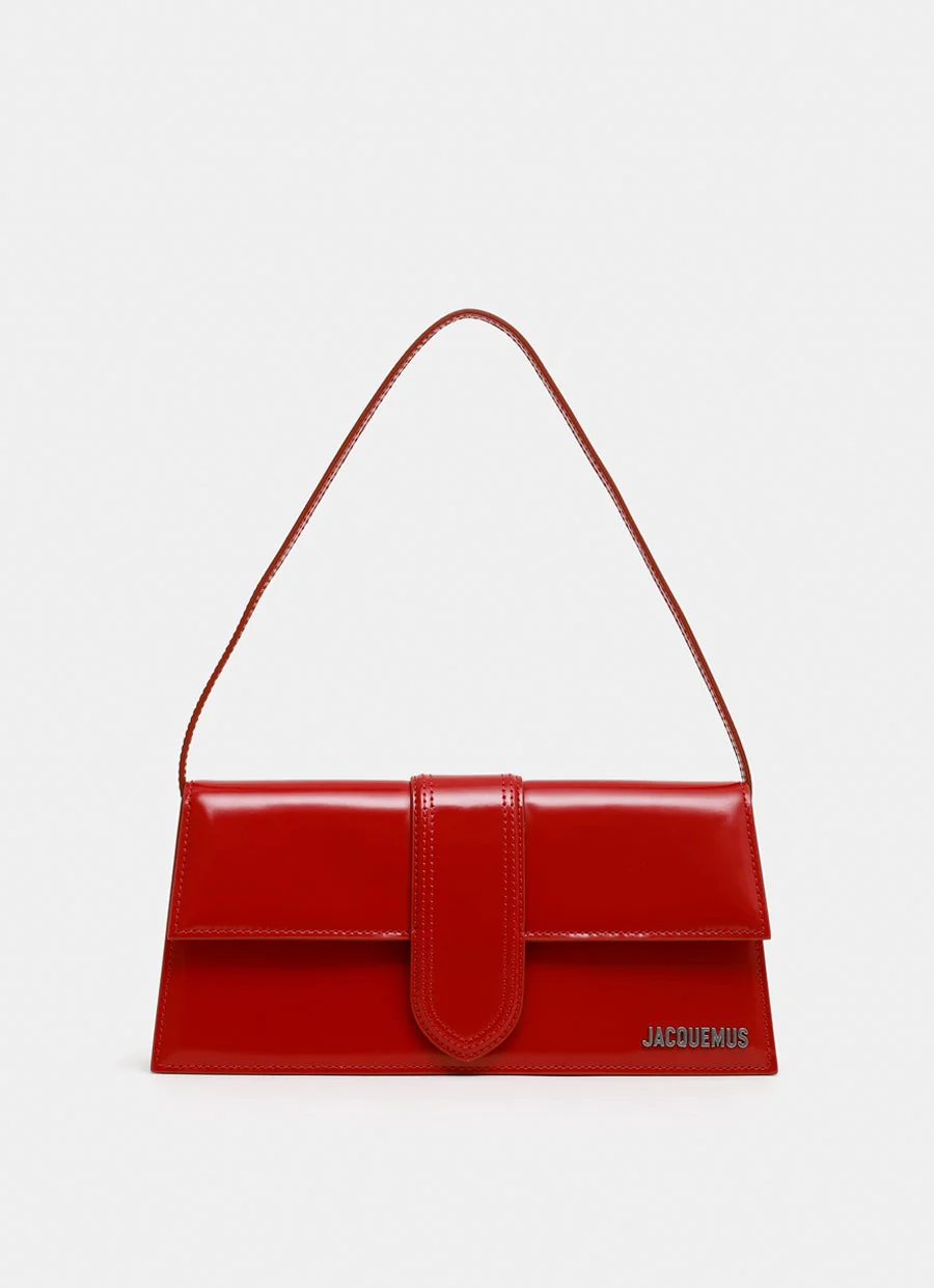 Bolso de hombro de Jacquemus en piel de charol. Con solapa y cierre magnético, correa estrecha no ajustable y bolsillo interior. Logo y detalles metálicos en metal dorado. Forro de algodón. Hecho en Italia. Tamaño: 28 x 13,5 x 6 cm.
