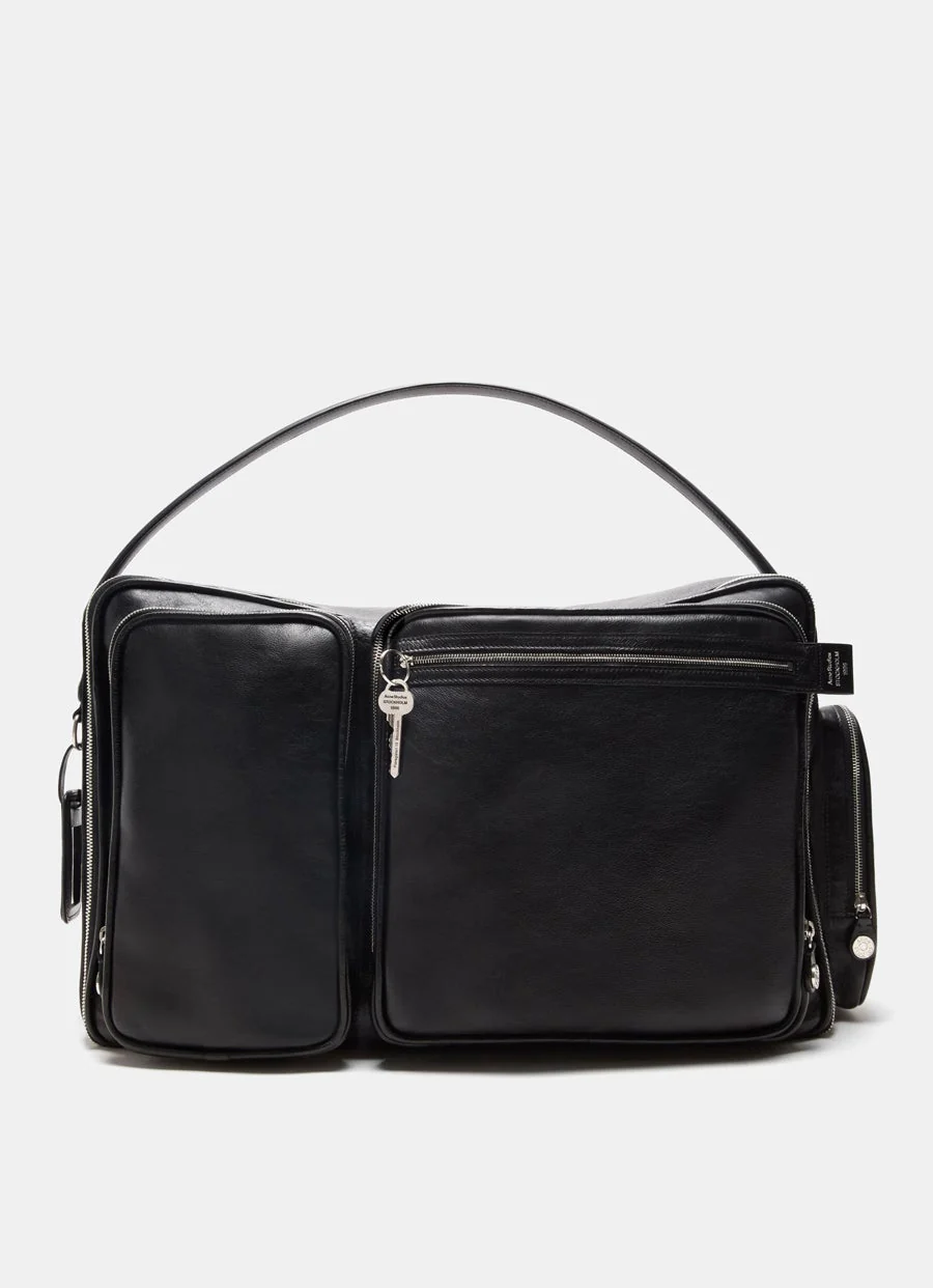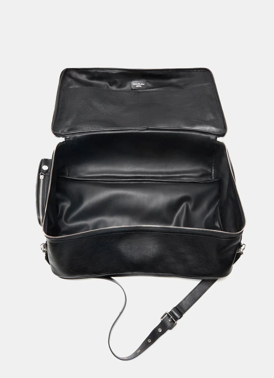 Bolso de Acne Studios de forma rectangular con logo grabado, compartimentos con cremallera y botones decorativos estilo jeans, llave con logo grabado y forro de tela. Asa: 85 cm. Correa ajustable: de 42 a 65 cm. Tamaño: 37 x 55 x 17 cm.