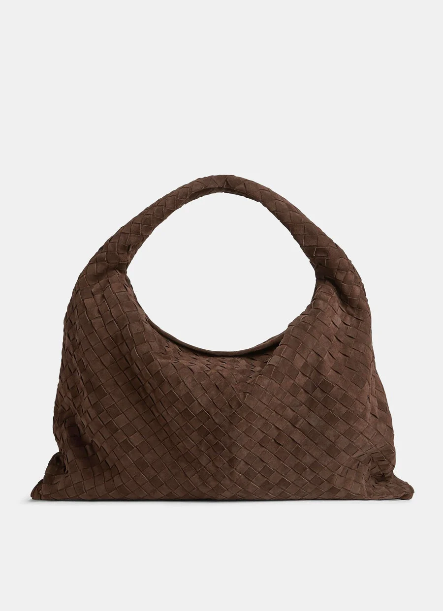 Bolso de Bottega Veneta en ante con motivo Intrecciato. Con un bolsillo interno con cremallera, solapa con cierre magnético y forro de piel de becerro. Hecho en Italia. Medidas: 54 x 24 x 13 cm aprox.