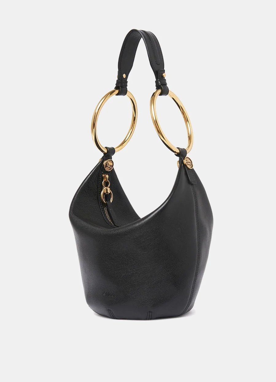 Bolso pequeño tipo pulsera de Chloé en piel de búfalo granulada con asas de pulsera grandes, correa de piel extraíble y cierre de cremallera. Para llevar en la mano, al hombro o en la muñeca. Hecho en Italia. Dimensions: 17 x 16 x 14cm.