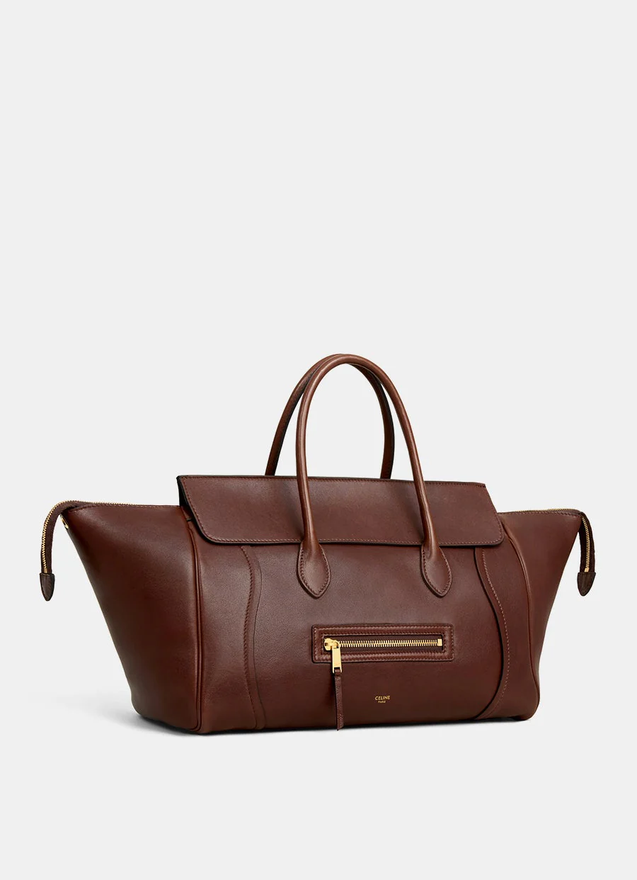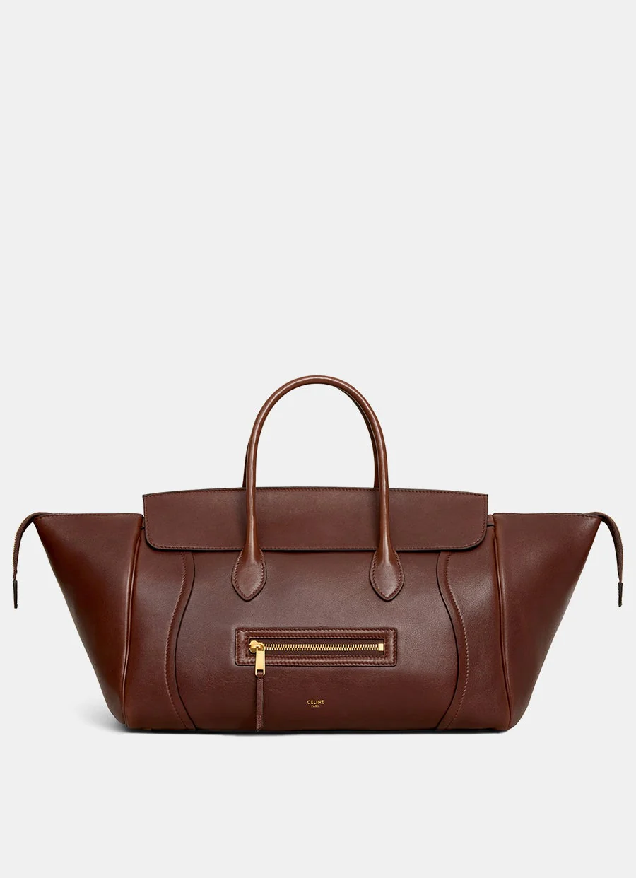 Bolso de Celine en piel de cordero flexible y brillante con un compartimento principal, un bolsillo interior con cremallera, un bolsillo exterior con cremallera, tachuelas en la parte inferior, dos asas superiores de 12cm de longitud, correa extraíble y ajustable con una longitud máxima de 58cm. Forro de ante de becerro. Para llevar en la mano, al hombro o cruzado. Hecho en Italia. Dimensiones: 16 x 22 x 36cm.
