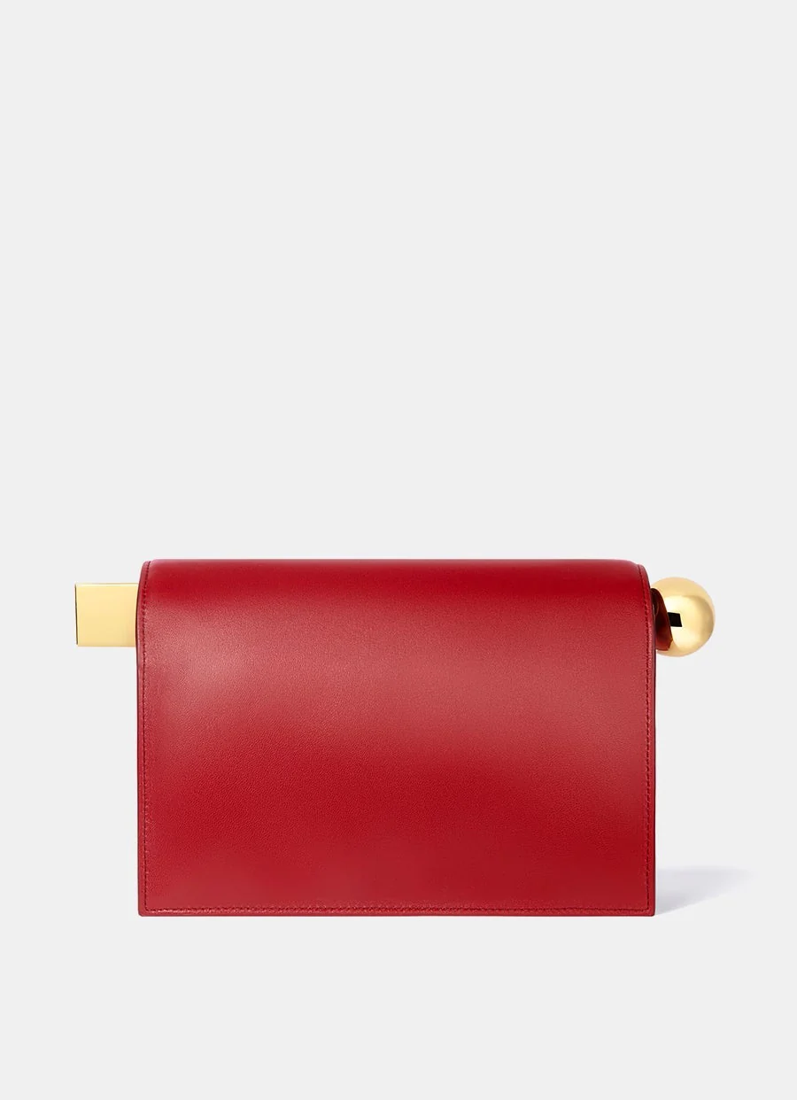 Bolso de mano de Jacquemus en piel napa de cordero. Con parte superior enrollable, remates de metal en forma de esfera y cubo, cierre magnético, bolsillo interior para tarjetas, logo metálico y forro de algodón. Hecho en Italia. Tamaño: 17 x 27.7 x 12.20 cm aprox.