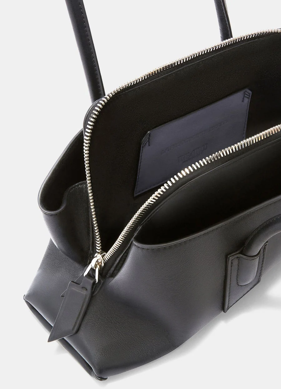 Bolso de The Attico en piel de becerro suave. Con asas superiores tubulares, bolsillo interno con cremallera y pies de metal. Hecho en Italia. Medidas: 37 x 37 x 11 cm aprox.