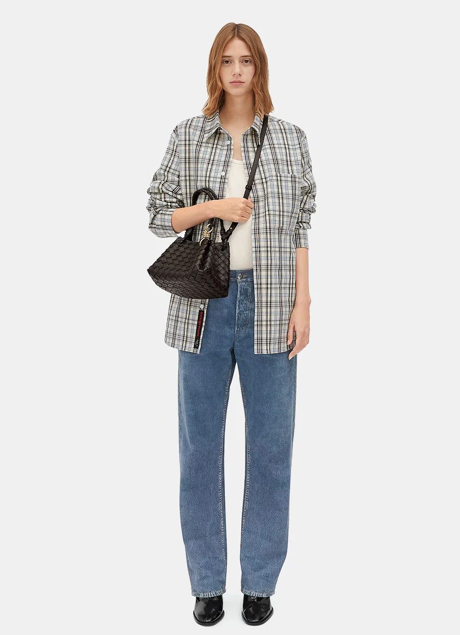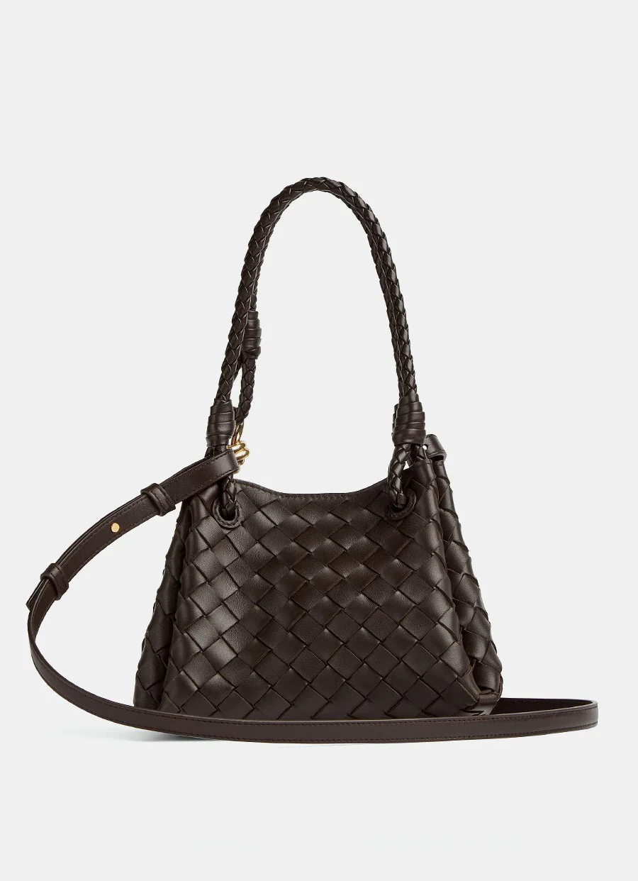 Bolso de hombro de Bottega Veneta en piel de cordero Intrecciato. Con asas superiores de 20 cm y detalle de nudo dorado, correa cruzada ajustable y removible, cierre magnético y forro de piel de cordero Intrecciato. Hecho en Italia. Tamaño: 16.5 x 20 x 17 cm aprox. Hecho en Italia.