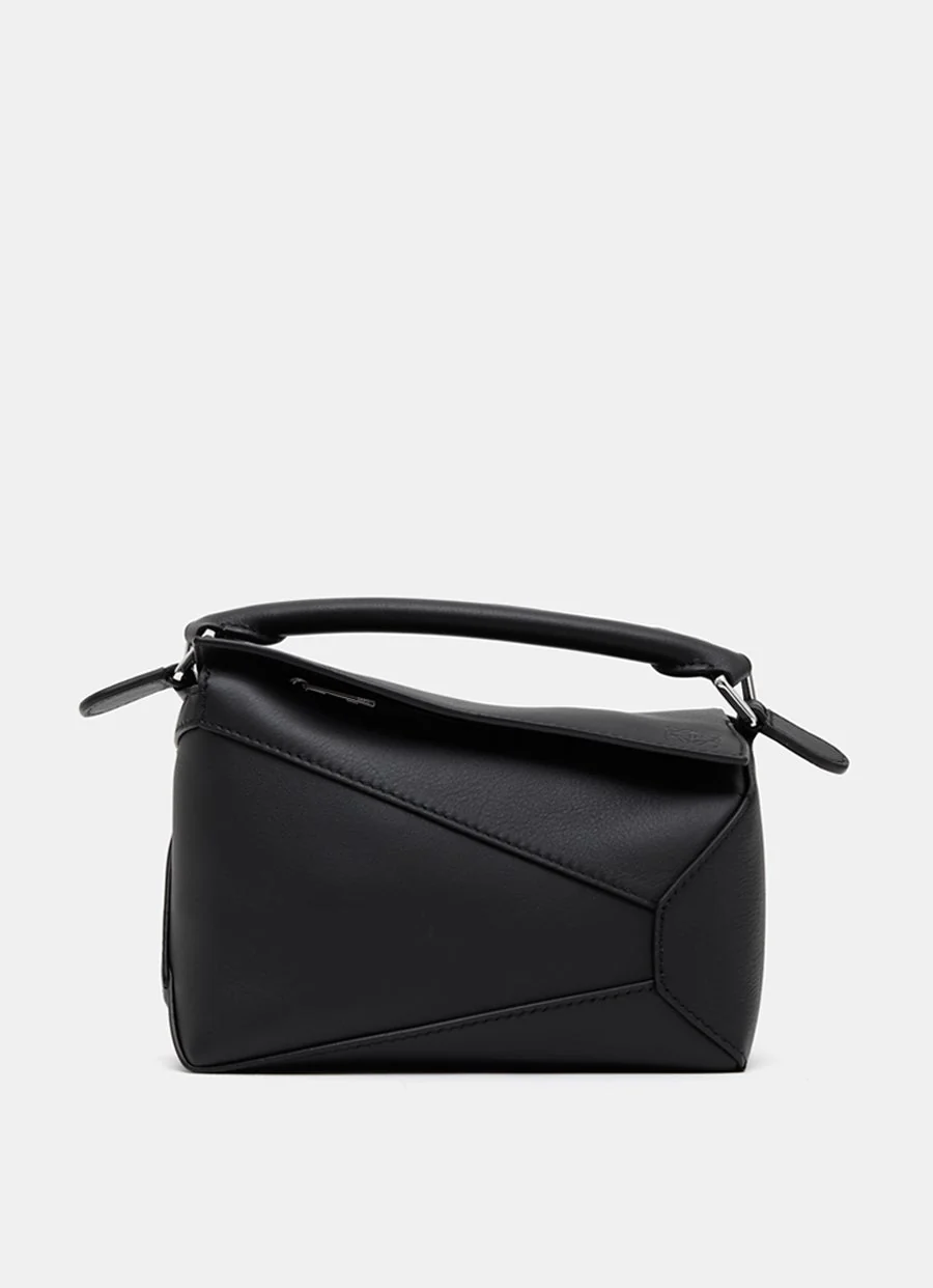 Bolso de Loewe para llevar al hombro, cruzado o en la mano. Con asa superior, correa ajustable y removible, cierre de cremallera con tirador de piel, bolsillo trasero externo con cremallera, bolsillo interior, anagrama grabado y forro de lona de algodón. Hecho en España. Medidas: 16.5 x 24 x 10.5 cm.