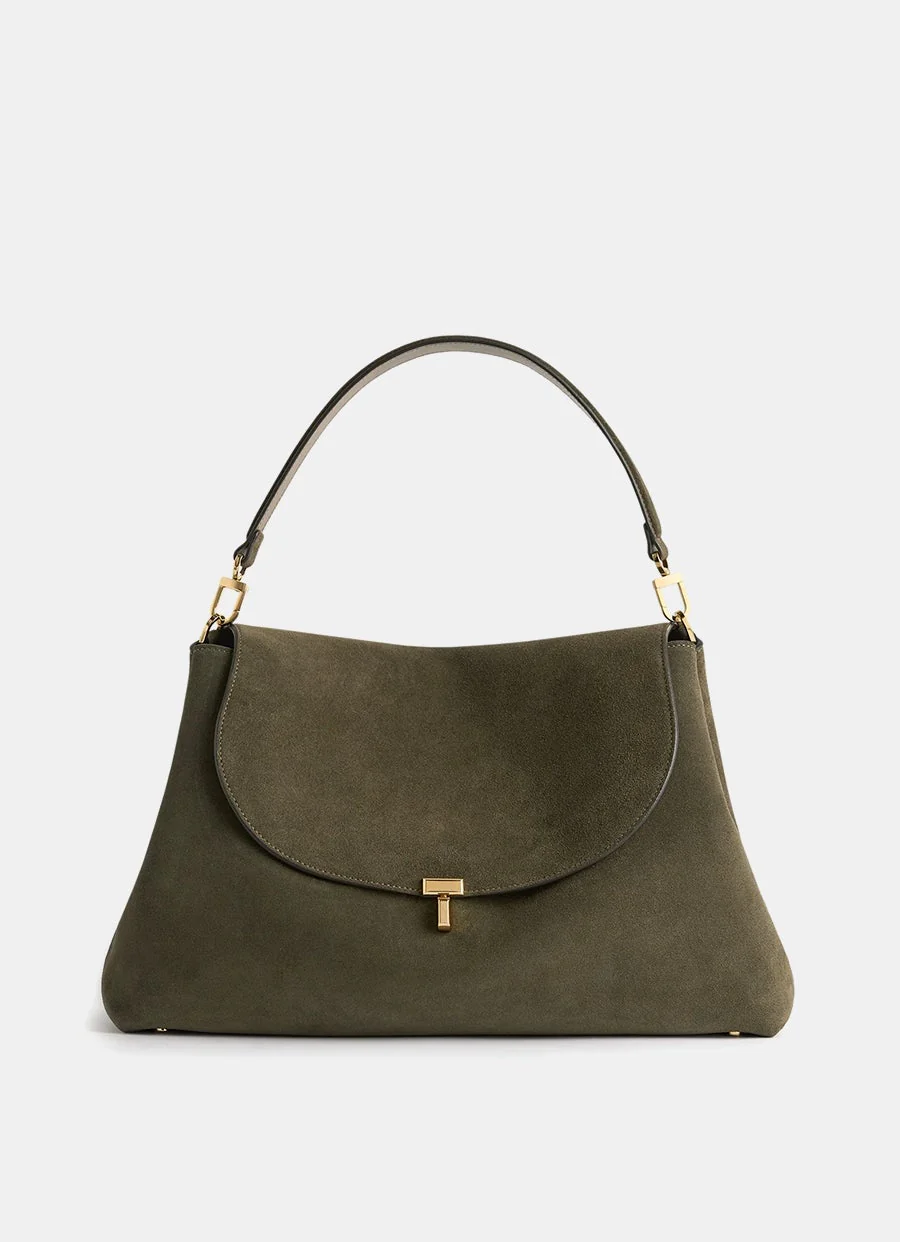 Bolso de TOTEME, en ante. Para llevar cruzado al hombro o en la mano. Con cierre de giro, correa ajustable y removible, asa superior extraíble, bolsillo trasero y dos bolsillos interiores. Hecho en Italia. Tamaño: 26 x 40 x 14 cm aprox.
