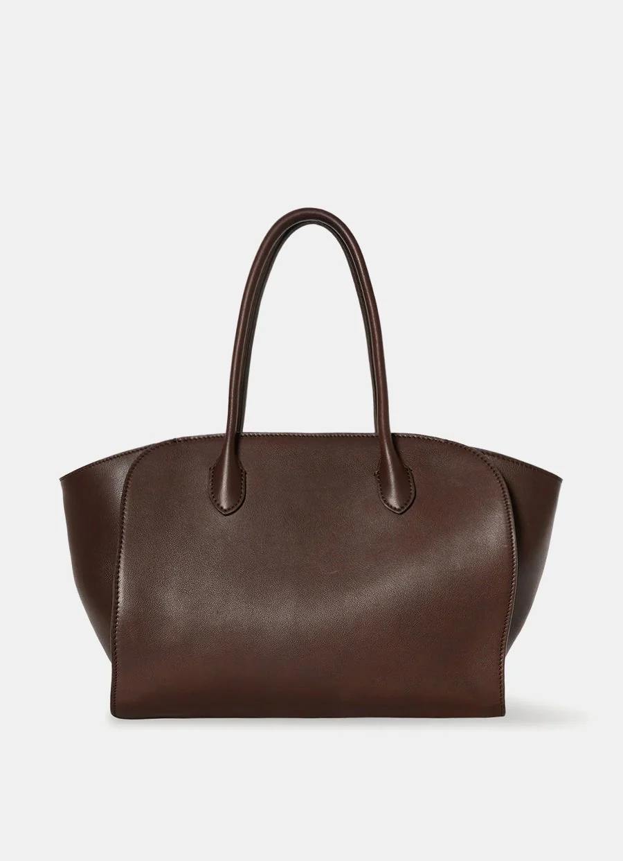 Bolso tote de The Row de piel de silla de montar pulida con asas tubulares con 19 cm de caída, paneles laterales con fuelle, forro de algodón, bolsillo interior con cremallera y cierre de cremallera superior. Hecho en Francia. Medidas: 30.5 x 17.8 x 10.2 cm.