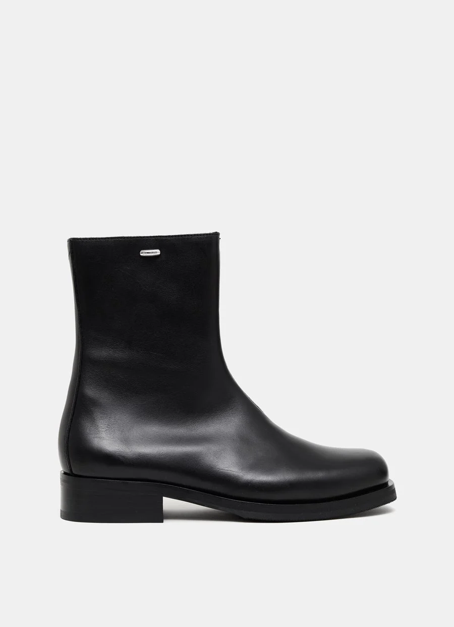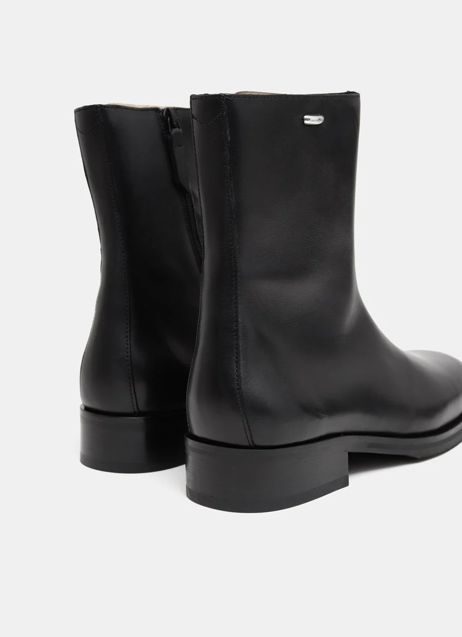 Bota de Our Legacy en piel de becerro italiana con suela Vibram, entresuela de cuero, remache metálico con logo y cierre con cremallera y tirador de cuero. Hecha en Portugal. Corte ancho y amplio. Recomendamos elegir una talla menos para mujer. Talla UE para hombre.
