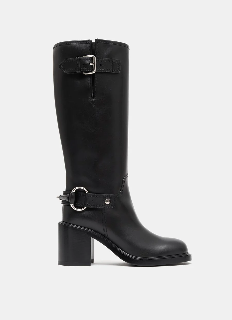 Bota de Gucci en piel negra con apliques plateados, suela de piel y tac贸n medio de 70 mm. Hecha en Italia. Tallaje normal, elige tu talla habitual. Tallaje italiano para mujer.