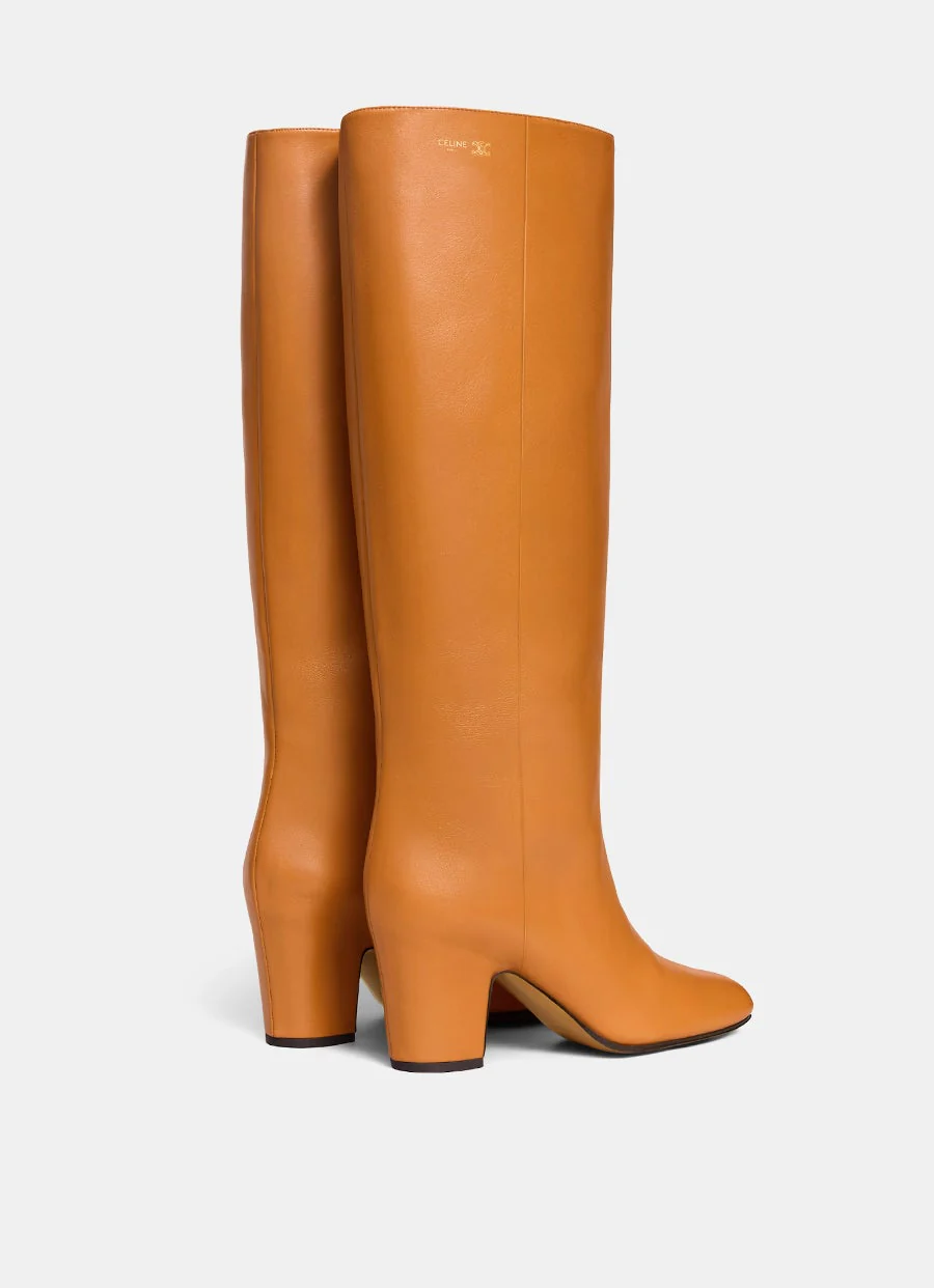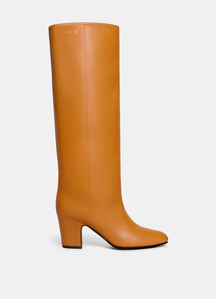 Botas altas de Celine en piel de becerro con puntera en forma de almendra, tacón forrado de 75mm, logotipo de Celine grabado en la parte superior, plantilla y suela de cuero. Sin cordones. Forro de piel de cordero. Hecho en Italia. Talla normal, elige tu talla habitual. Tallaje italiano para mujer.