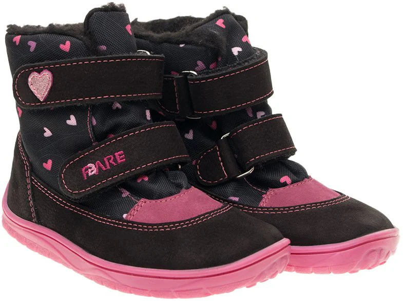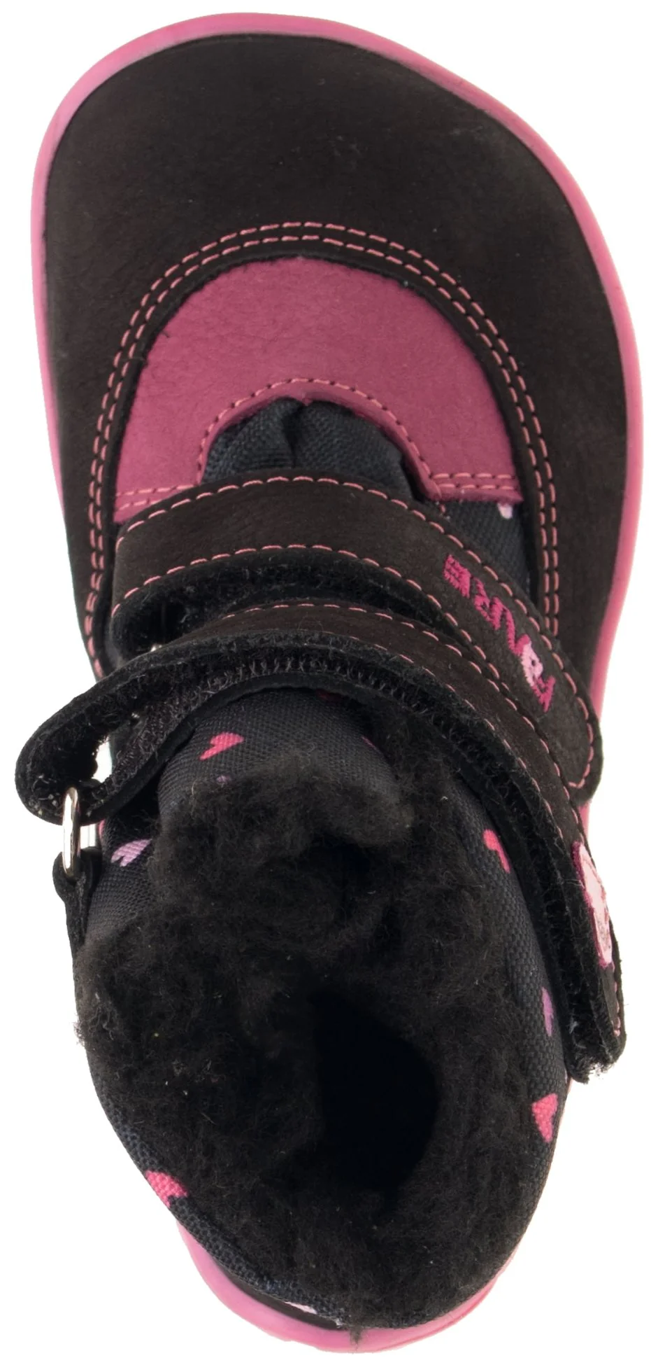 Las Botas Impermeables de Invierno Corazones de la marca Fare Bare ofrecen estilo y protecci贸n ideal para el invierno. Con un dise帽o atractivo en negro y rosa con dibujos de corazones, estas botas semi altas, modelo FBARE FINKY, est谩n fabricadas con una combinaci贸n de piel natural (Nobuck) y textil. Cuentan con una membrana clim谩tica impermeable de alta calidad que bloquea la entrada de agua y permite la transpiraci贸n, manteniendo los pies secos y c贸modos. El cierre de velcro facilita un ajuste r谩pido y seguro.