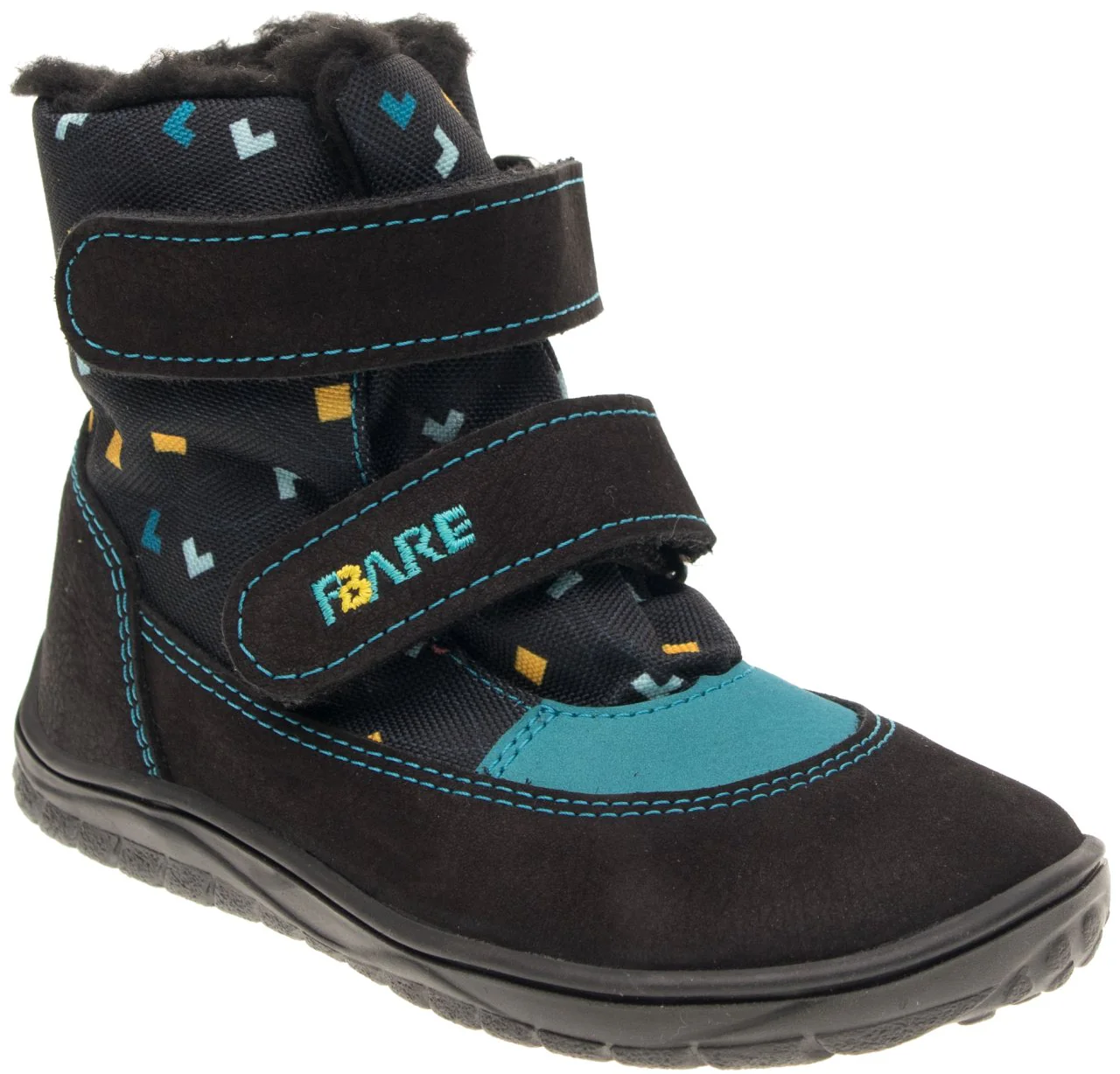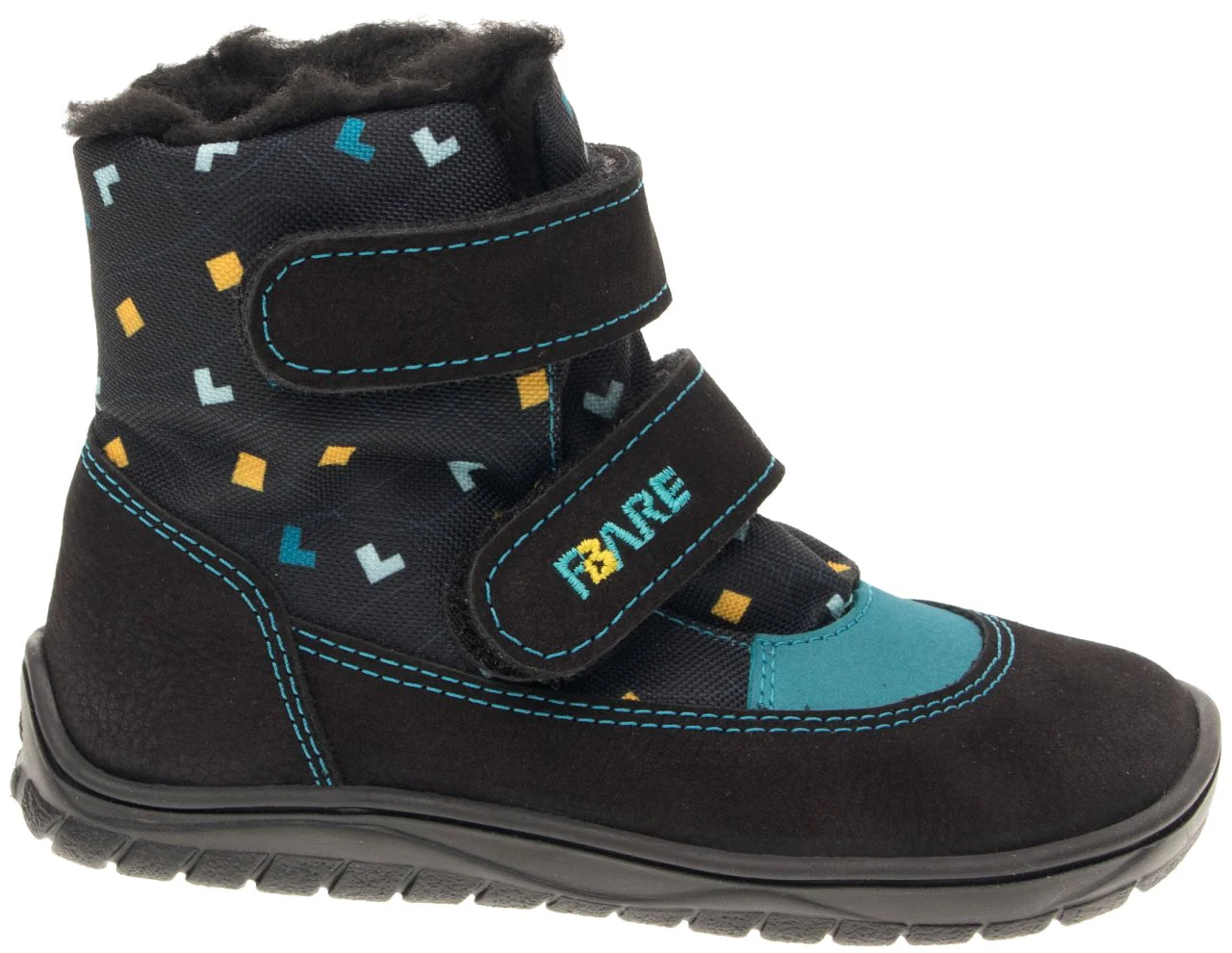 Las Botas Impermeables de Invierno con Motivos Geométricos de la marca Fare Bare ofrecen estilo y protección ideal para el invierno. Con un diseño atractivo en negro y rosa con dibujos de corazones, estas botas semi altas, modelo FBARE FINKY, están fabricadas con una combinación de piel natural (Nobuck) y textil. Cuentan con una membrana climática impermeable de alta calidad que bloquea la entrada de agua y permite la transpiración, manteniendo los pies secos y cómodos. El cierre de velcro facilita un ajuste rápido y seguro.
