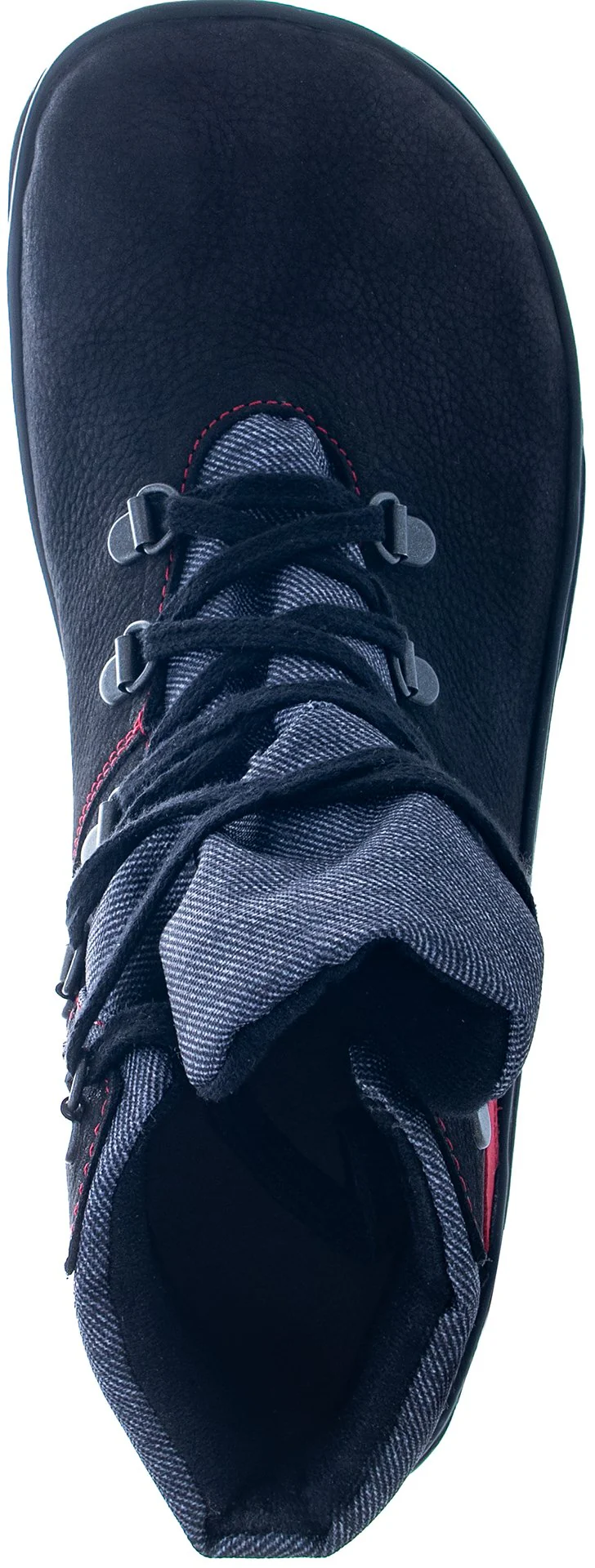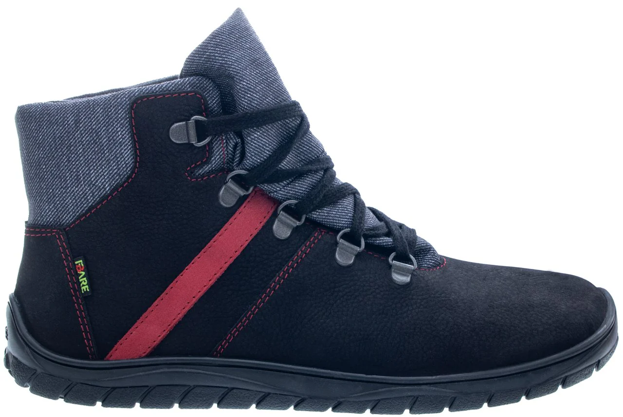 Las botas barefoot impermeables de Fare Bare combinan resistencia, comodidad y libertad de movimiento. Fabricadas en piel nobuk natural negra con costuras en rojo, destacan por su diseño robusto y funcional, ideal para todo tipo de clima.