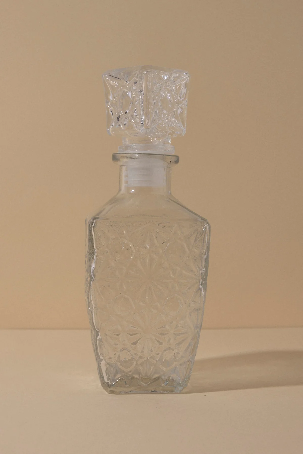 Botella con tap贸n en vidrio tallado que podr谩s utilizar tanto de botella para perfume, bebidas, o incluso el gel hidroalcoholico; y tambi茅n como violetero.