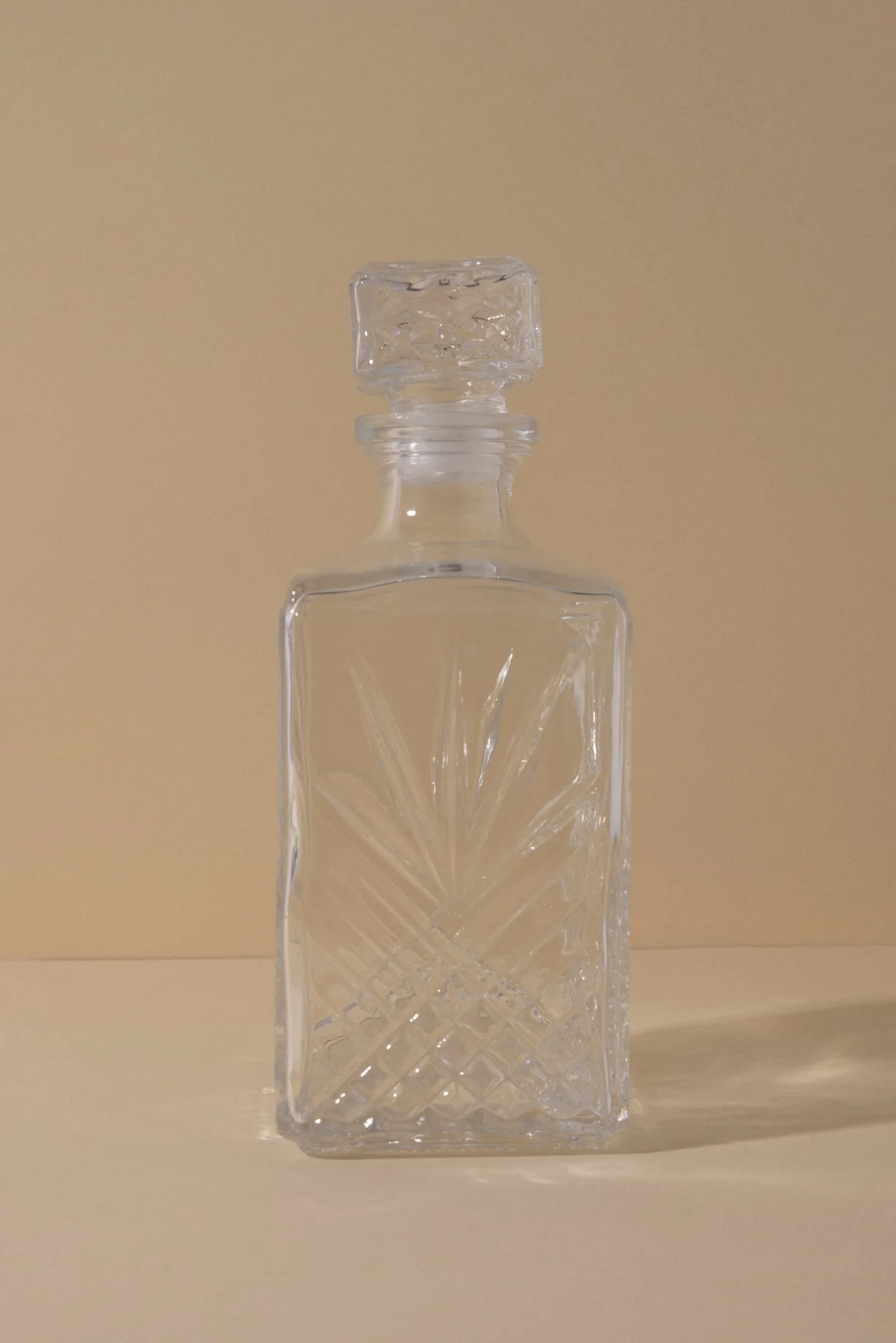 Botella con tap贸n en vidrio tallado que podr谩s utilizar tanto de botella para perfume, bebidas, o incluso el gel hidroalcoholico; y tambi茅n como violetero.