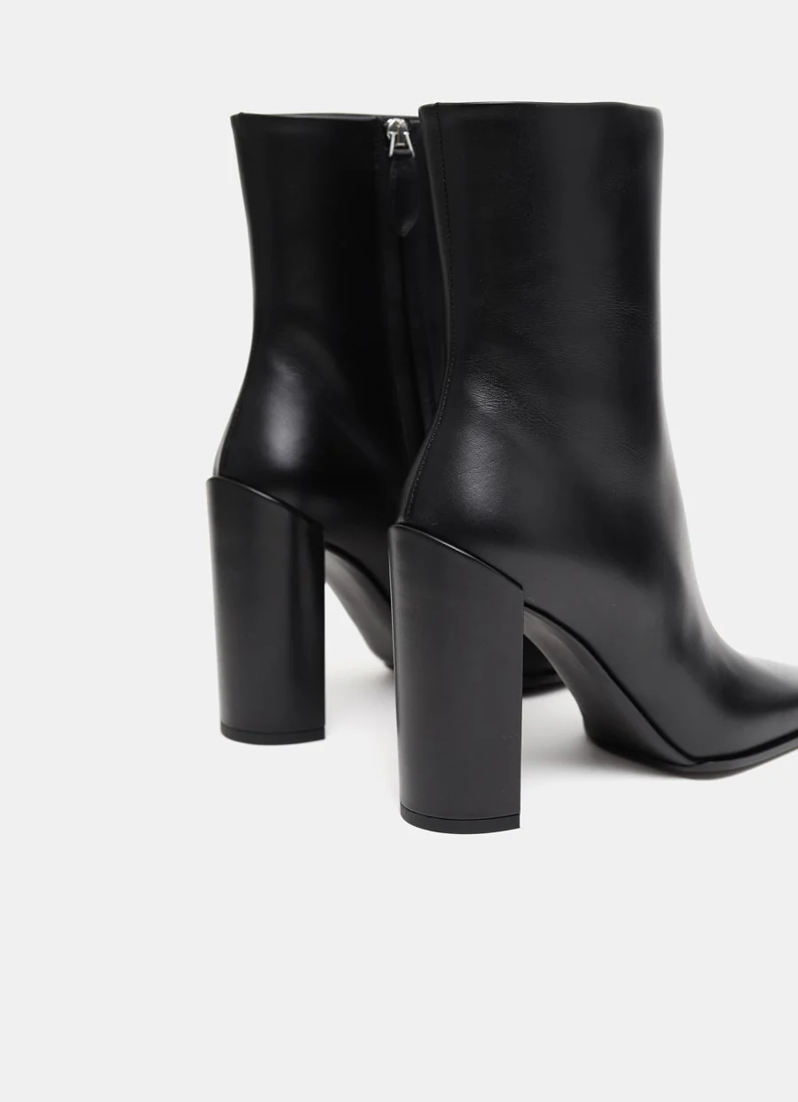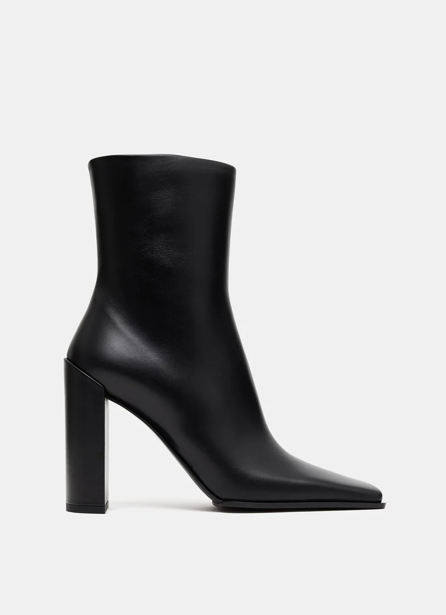Botín de Alaïa en piel de becerro suave con puntera cuadrada, cierre de cremallera lateral y tacón de 9 cm forrado de piel. Hecho en Italia. Talla normal, elige tu talla habitual. Tallaje UE.