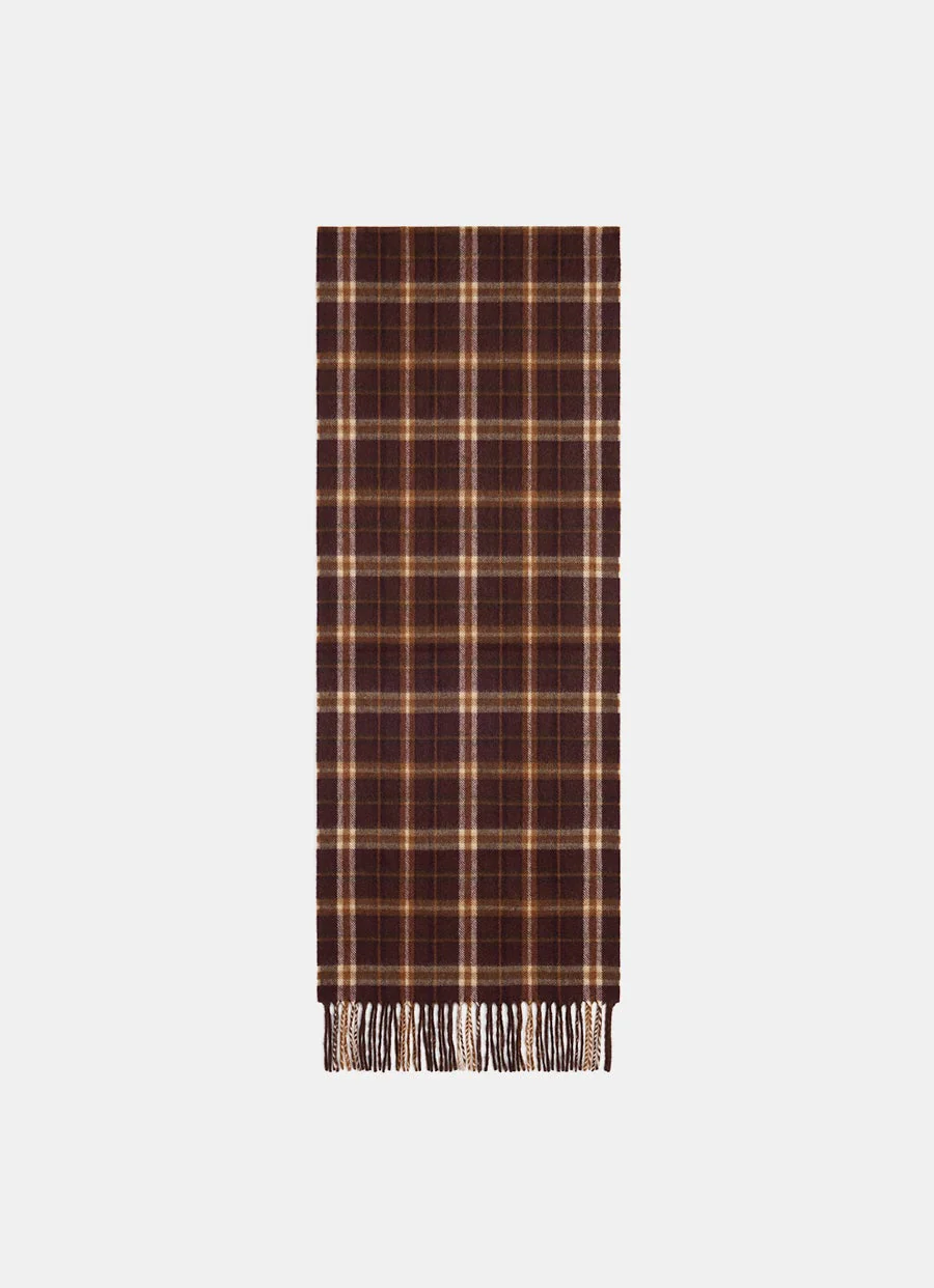 Bufanda de Celine en cashmere a cuadros con flecos. Hecho en Inglaterra. Medida: 35 x 190 cm.