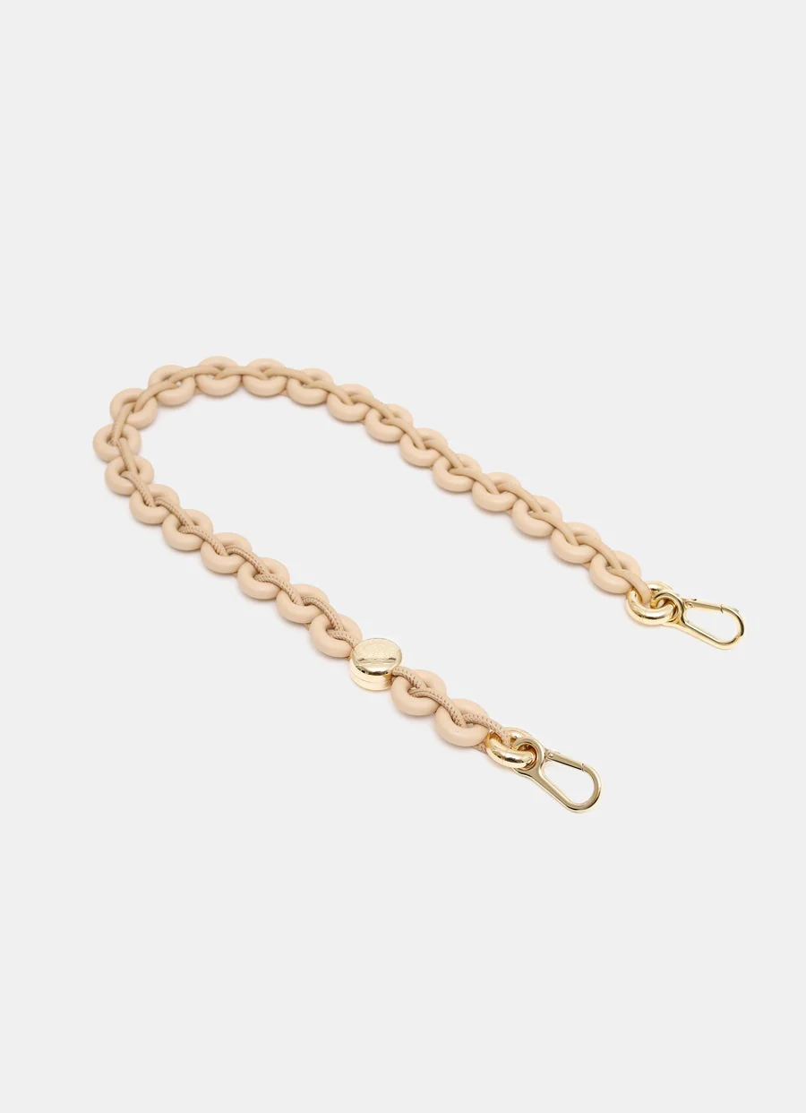 Correa de Loewe con eslabones circulares gruesos en metal engarzados con cordón de piel, enganche de mosquetón y eslabón con anagrama grabado. Largo total: 60 cm. Ancho: 3 cm.
