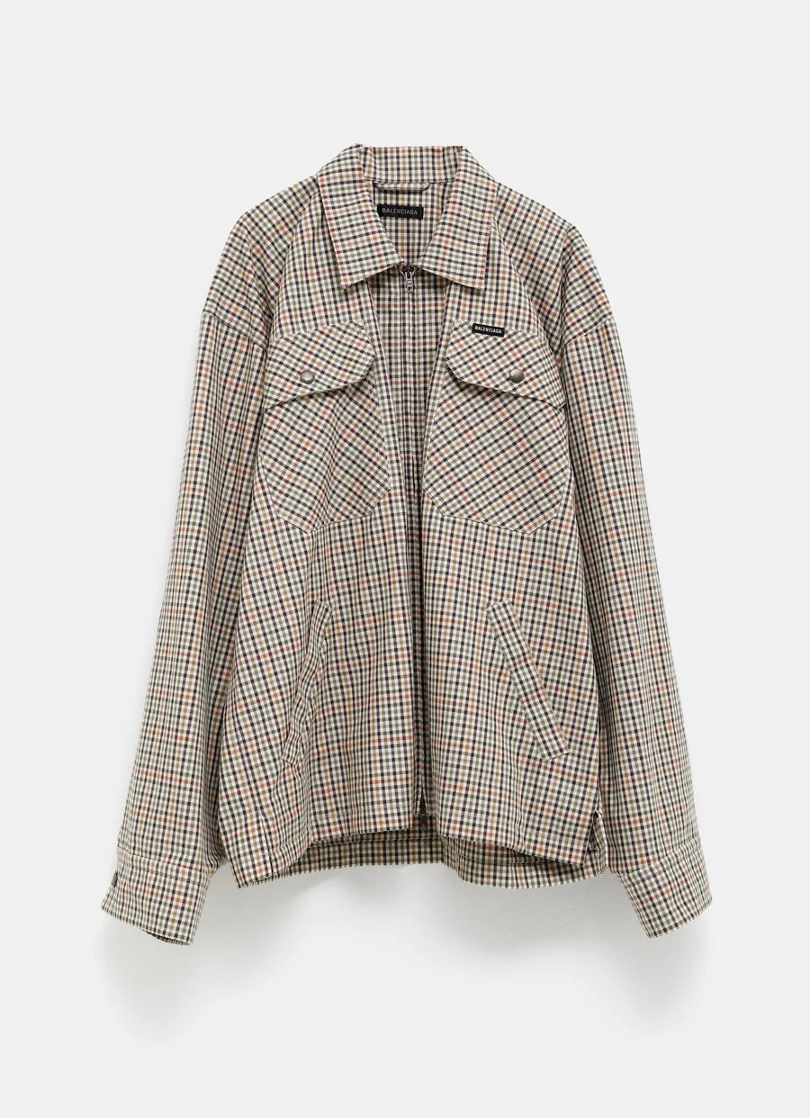 Camisa de Balenciaga en franela a cuadros con cierre de cremallera, cuello camisero, dos bolsillos con solapa en el pecho, dos bolsillos, logo bordado en el pecho y la parte trasera. Hecha en Portugal. Large fit. Talla normal, elige tu talla habitual. Tallaje numérico para hombre.