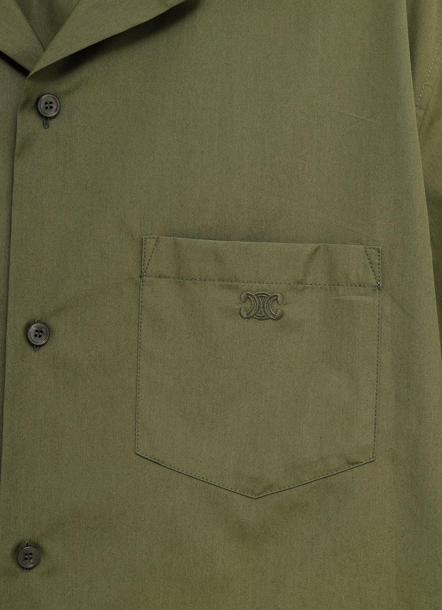Camisa de Celine en popelina de algodón con cuello abierto, manga corta, cierre con botones en la parte delantera y bolsillo de parche con bordado Triomphe. Corte holgado. Hecha en Portugal. Talla normal, elige tu talla habitual. Tallaje italiano para hombre.