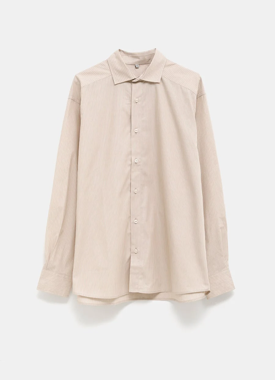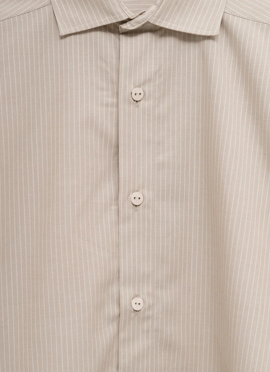 Camisa de Baserange a rayas con cierre de botones, bajo curvo, y botones los puños. Corte ancho. Hecha en Portugal. Talla normal, elige tu talla habitual. Tallaje estándar.
