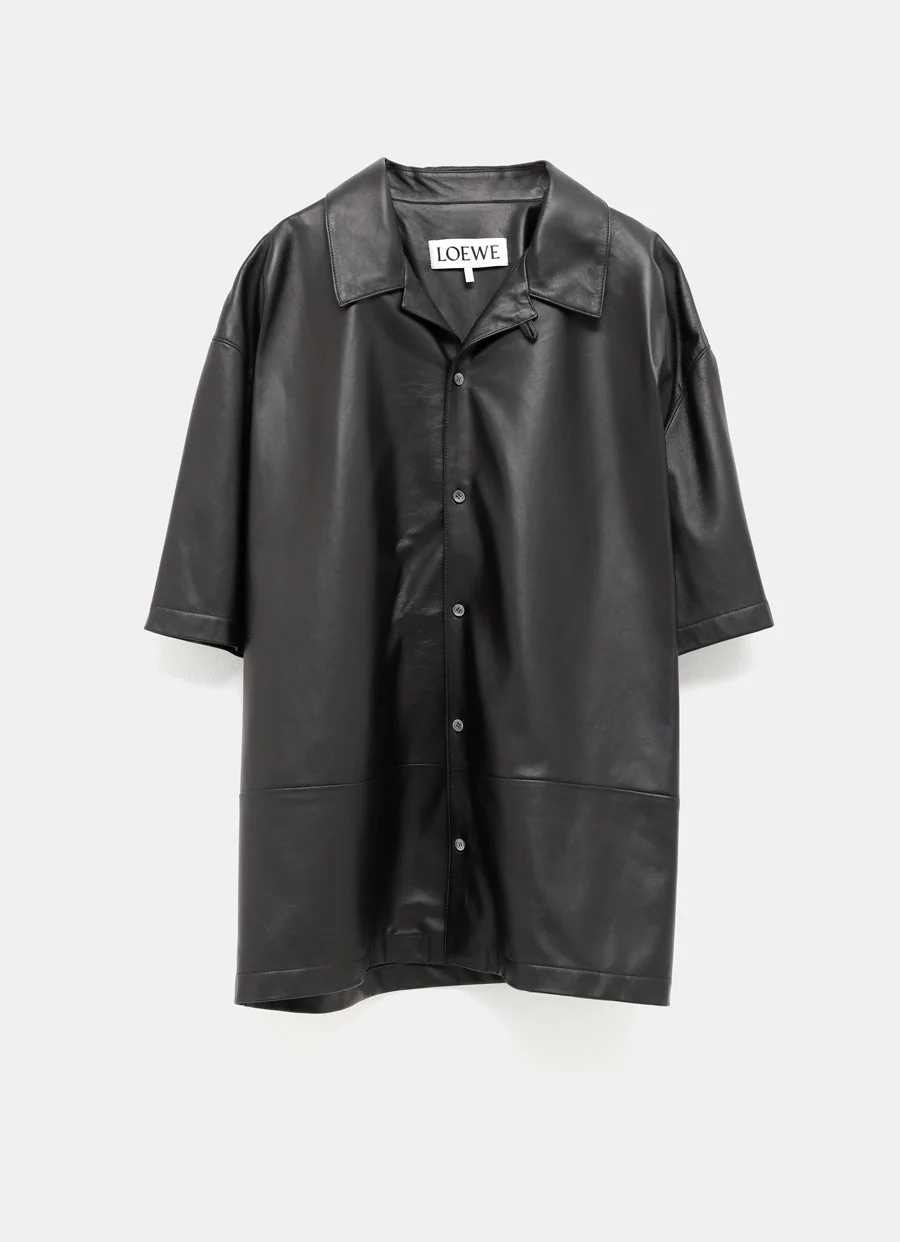 Camisa de Loewe en piel de napa con manga corta, Anagrama grabado en la espalda y cierre con botones. Corte relajado. Hecha en España. Talla normal, escoge tu talla habitual. Tallaje UE para hombre.