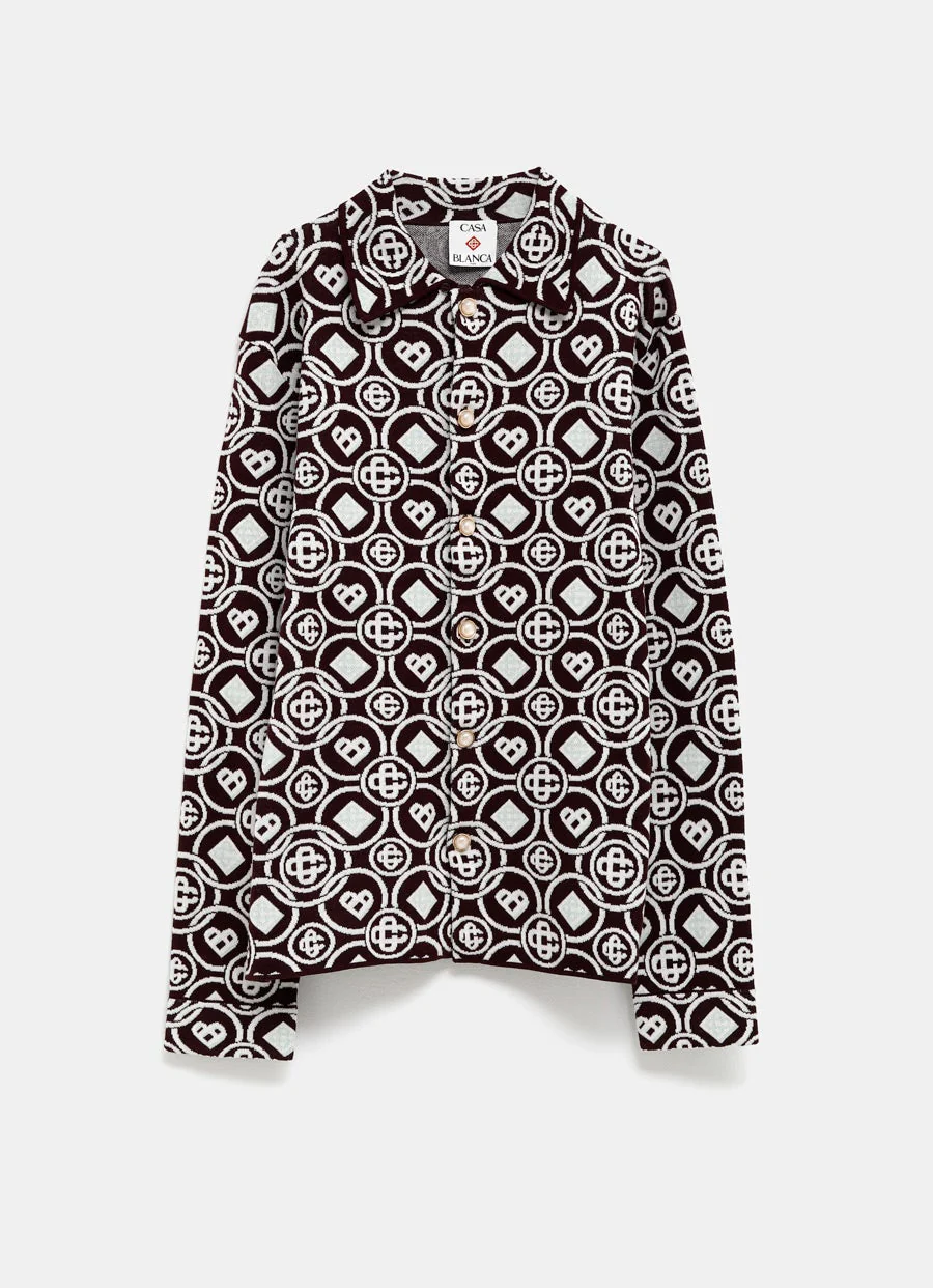 Camisa de Casablanca en tejido de punto de algodón con estampado integral, cuello en punta, detalle bordado en el bajo, cierre de botones delantero y los característicos botones de perla con ribete dorado. Corte holgado. Talla normal, elige tu talla habitual. Tallaje estándar para hombre.