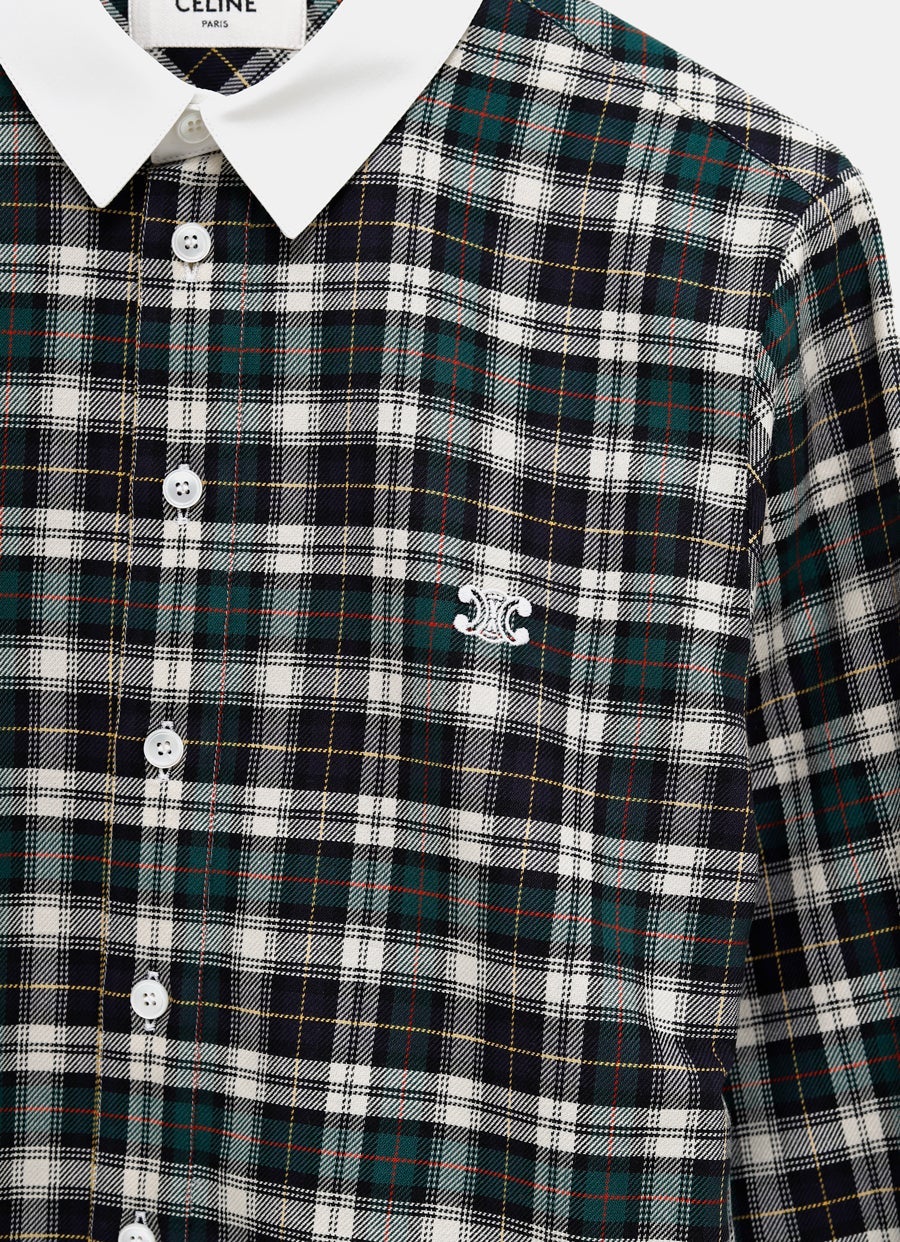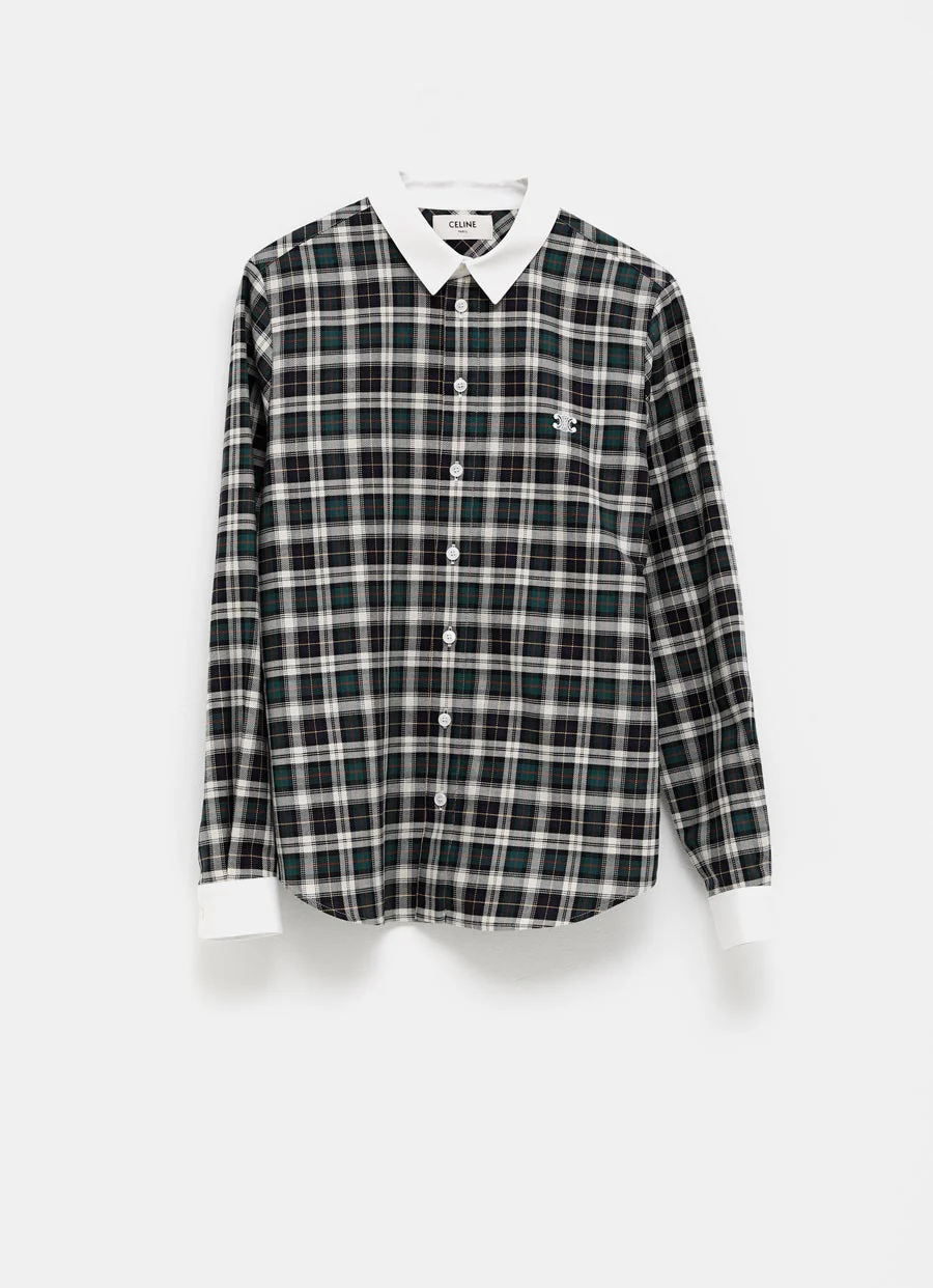 Camisa de Celine en algodón a cuadros con cuello y puños clásicos en contraste, bordado Triomphe en la parte delantera, puños abotonados y cierre frontal. Hecho en Italia. Talla normal, elige tu talla habitual. Tallaje francés para mujer.