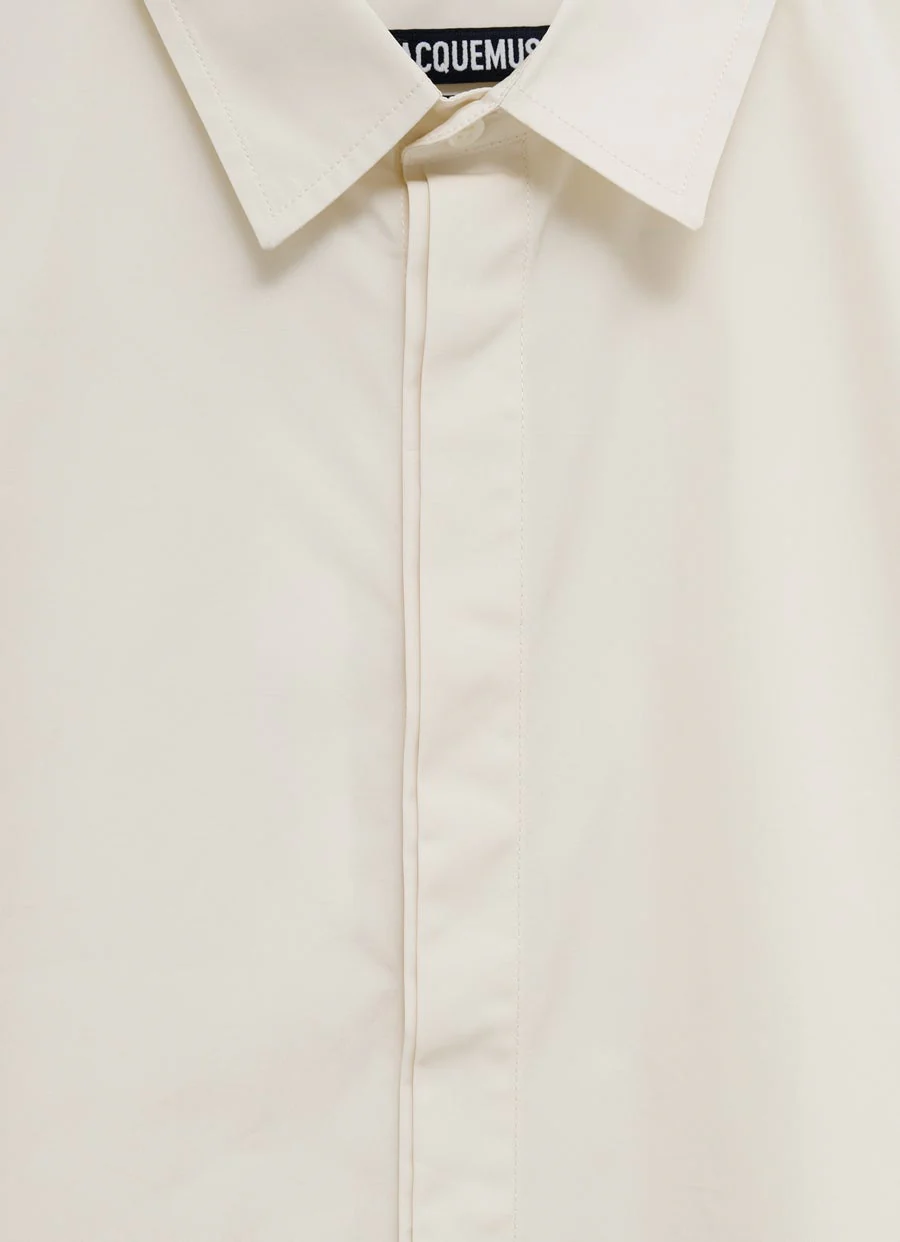 Camisa de manga larga de Jacquemus en algodón ligero con cuello en punta y cierre frontal con botones ocultos. Corte recto y holgado. Hecha en Francia. Talla normal, elige tu talla habitual. Tallaje francés para hombre.